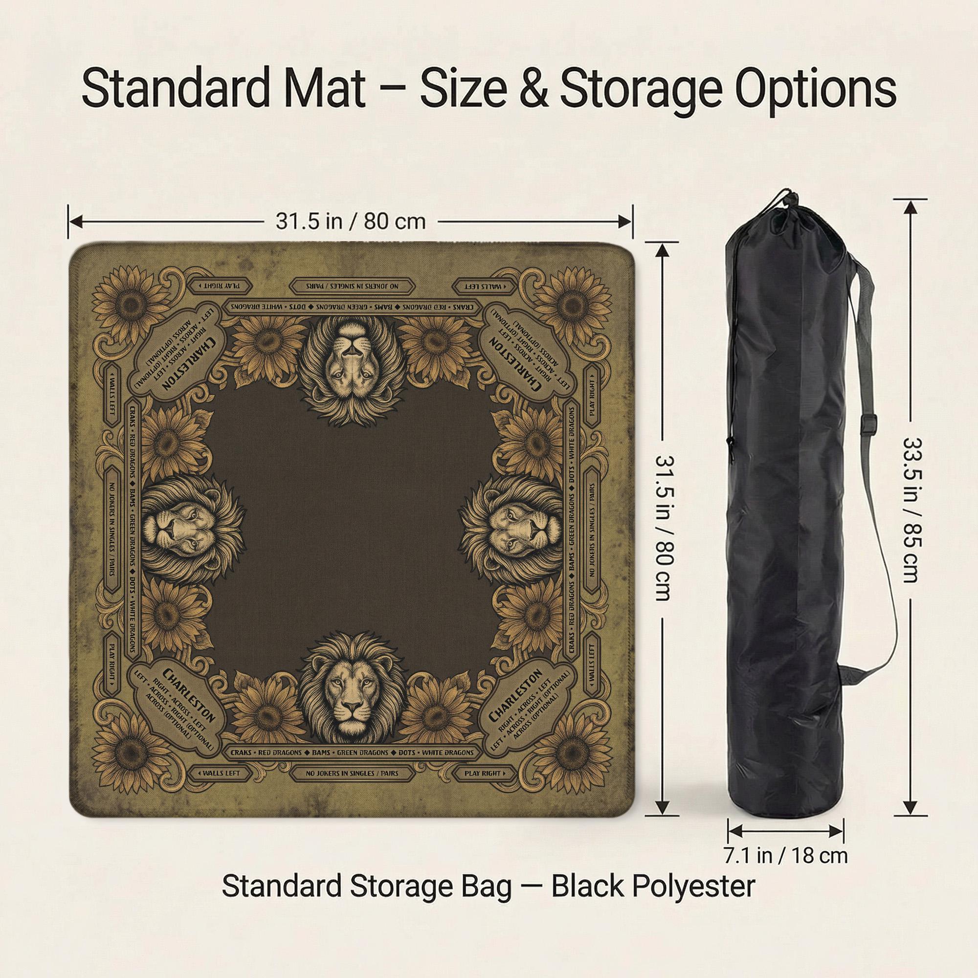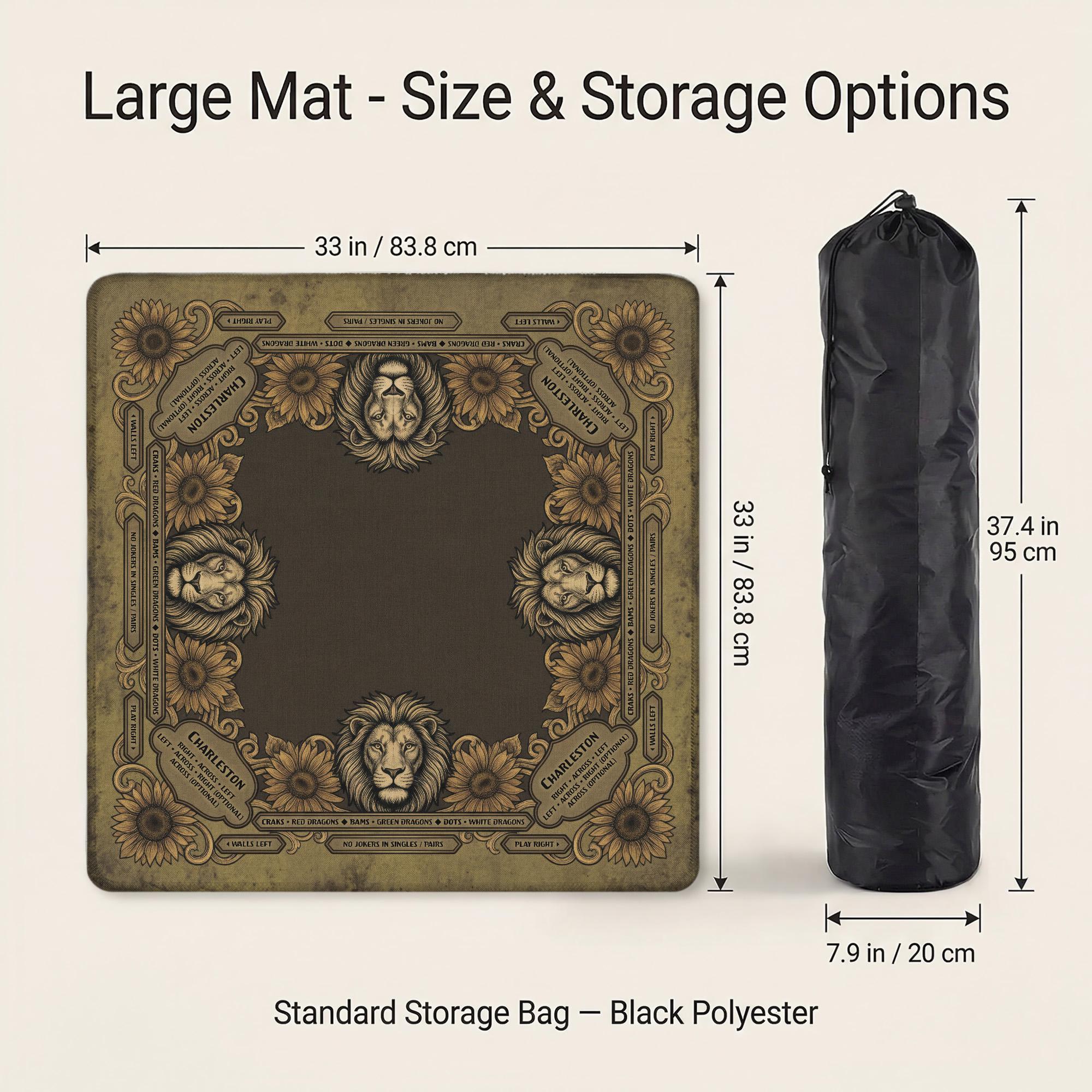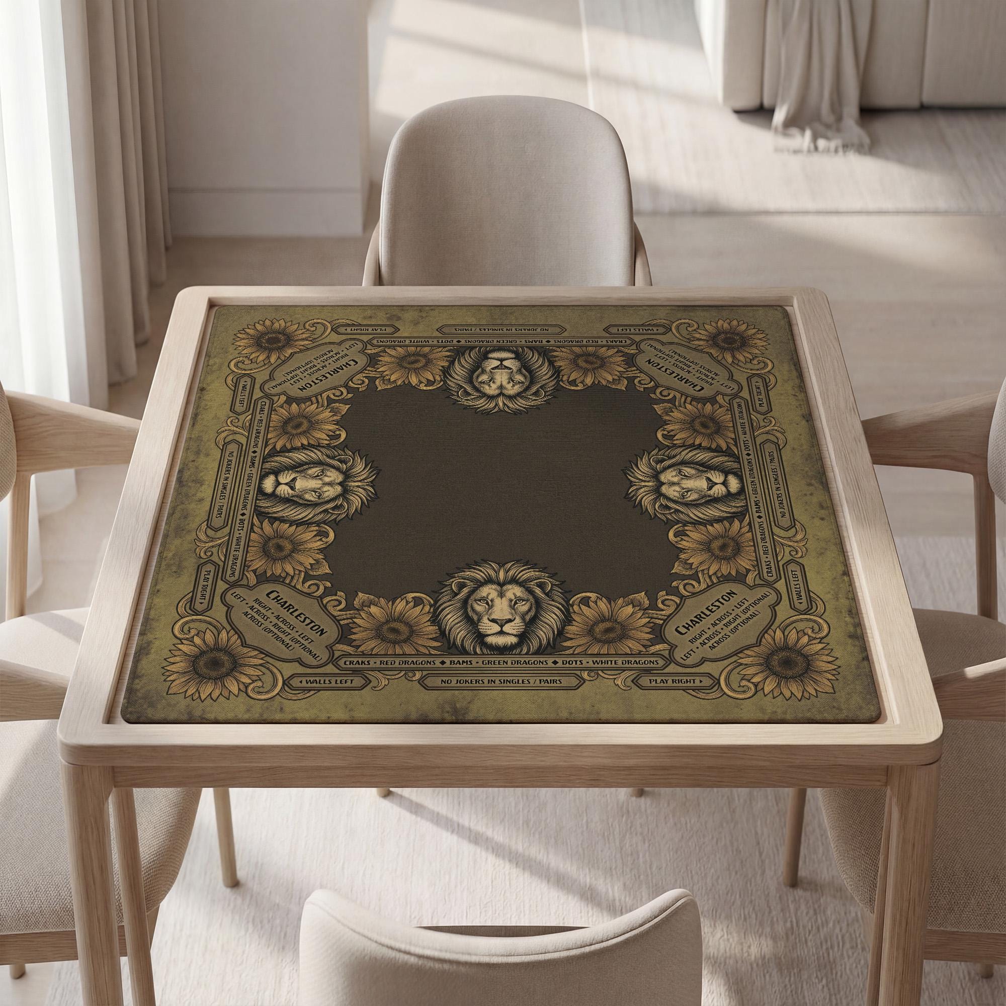 Elevate your game nights with this exquisite Leo mahjong mat, designed for astrology enthusiasts who appreciate both style and function. Featuring a vintage lion and sunflower motif, this zodiac game decor combines artistry with practicality on a waterproof, noise-reducing surface. Crafted to enhance your playing experience, this custom game gift is perfect for those seeking a unique and personalized touch.