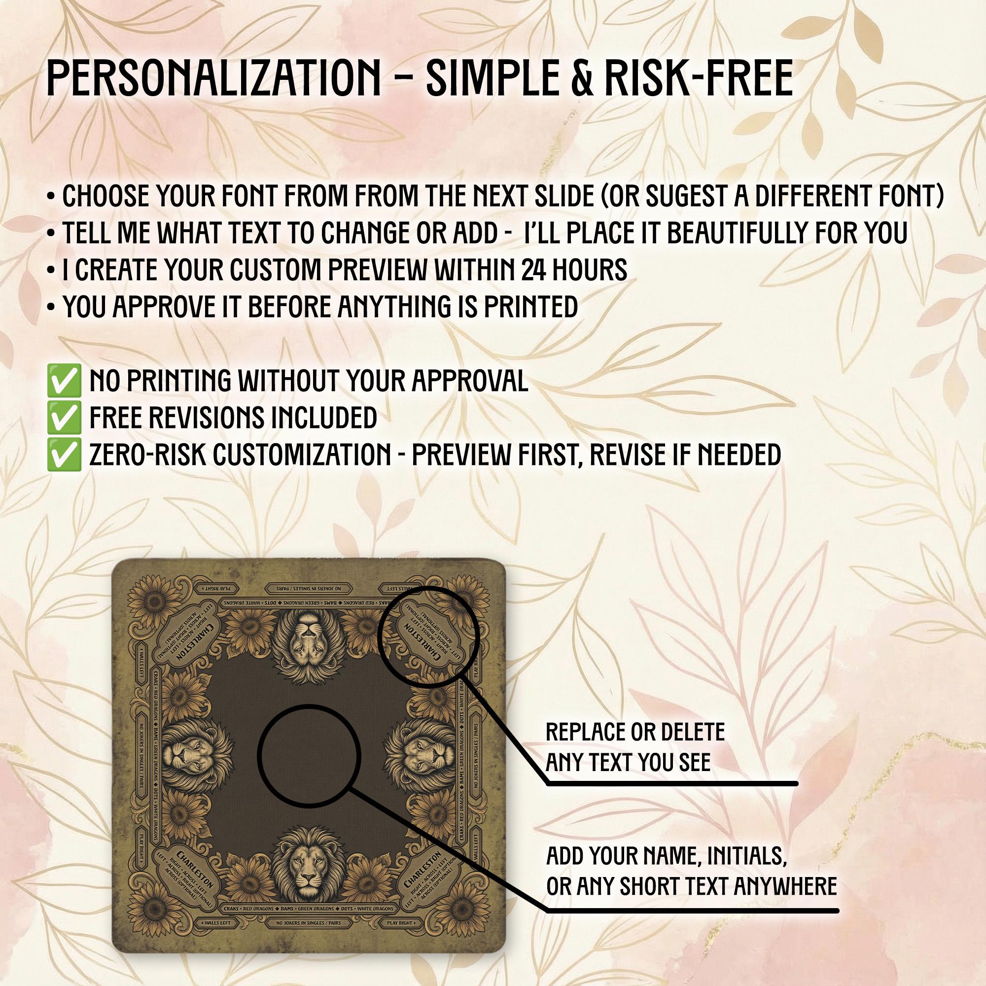 Our shop is dedicated to creating thoughtful, high-quality accessories that enhance your gaming moments. Each personalized Mahjong mat is carefully crafted with attention to detail and shipped promptly to bring joy to your game nights and special occasions.