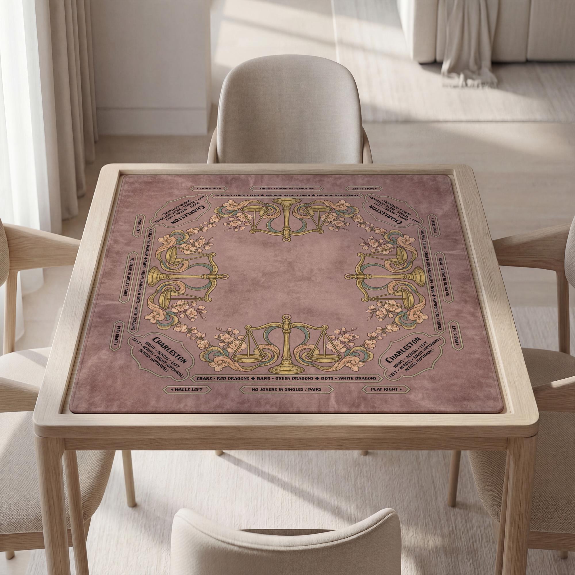 Inspired by the harmony of the Libra scales, this personalized Mahjong mat blends astrology decor with exquisite mauve floral art to create a truly unique player gift. Designed as a custom table cover, it elevates your gaming experience with both style and function. Whether you're seeking a balanced scales gift or a waterproof mat for your next game night, this ornate game surface is crafted to impress.
