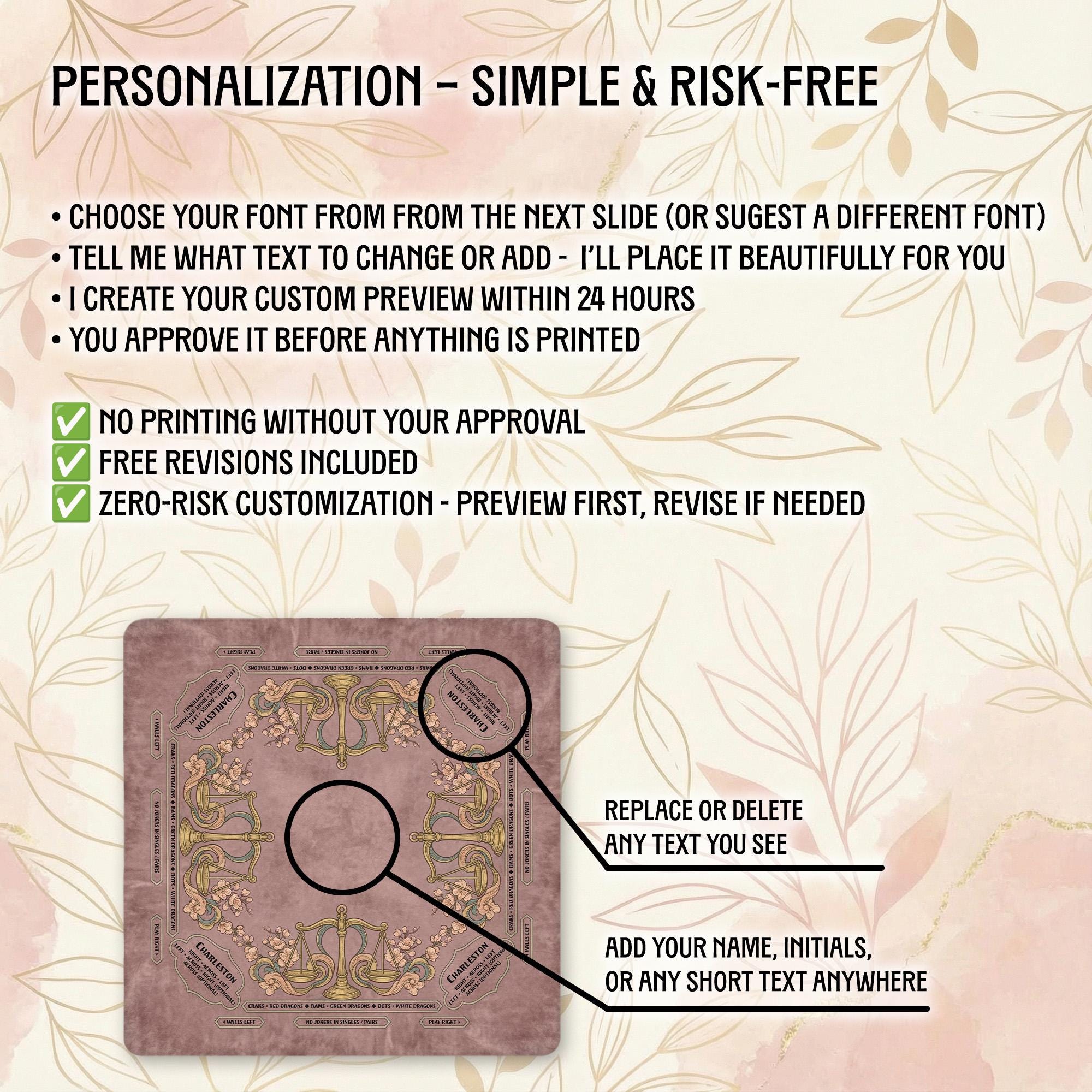 Our shop is dedicated to creating thoughtful, high-quality accessories that enhance your gaming moments. Each personalized Mahjong mat is carefully crafted with attention to detail and shipped promptly to bring joy to your game nights and special occasions.