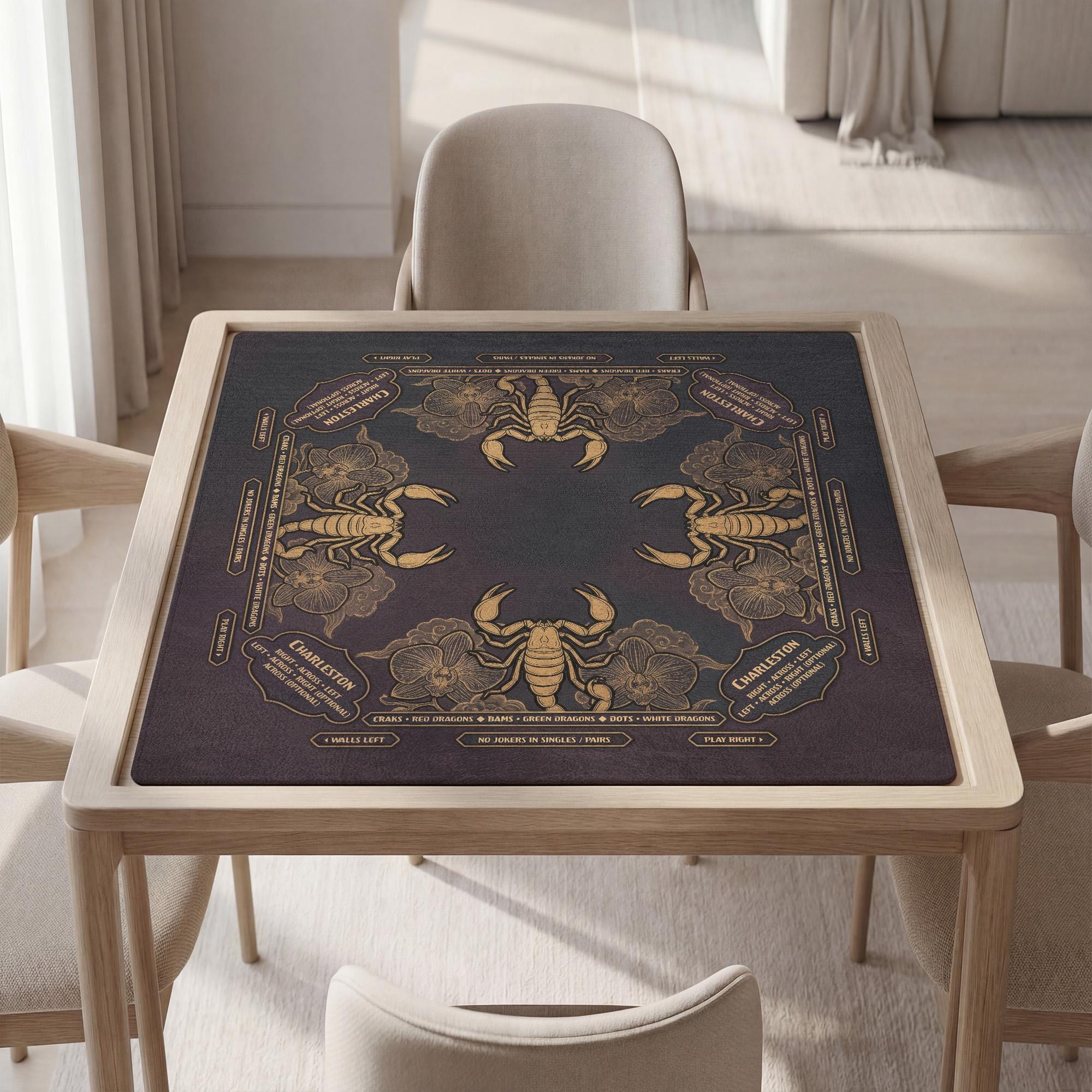 Immerse yourself in the captivating blend of astrology and elegance with this personalized Scorpio Mahjong mat, featuring exquisite gold scorpion art set against a rich purple orchid decor. Designed for those who cherish their zodiac game table, this custom table cover transforms every game night into a meaningful experience. Waterproof and noise reducing, itβs as practical as it is stunning.