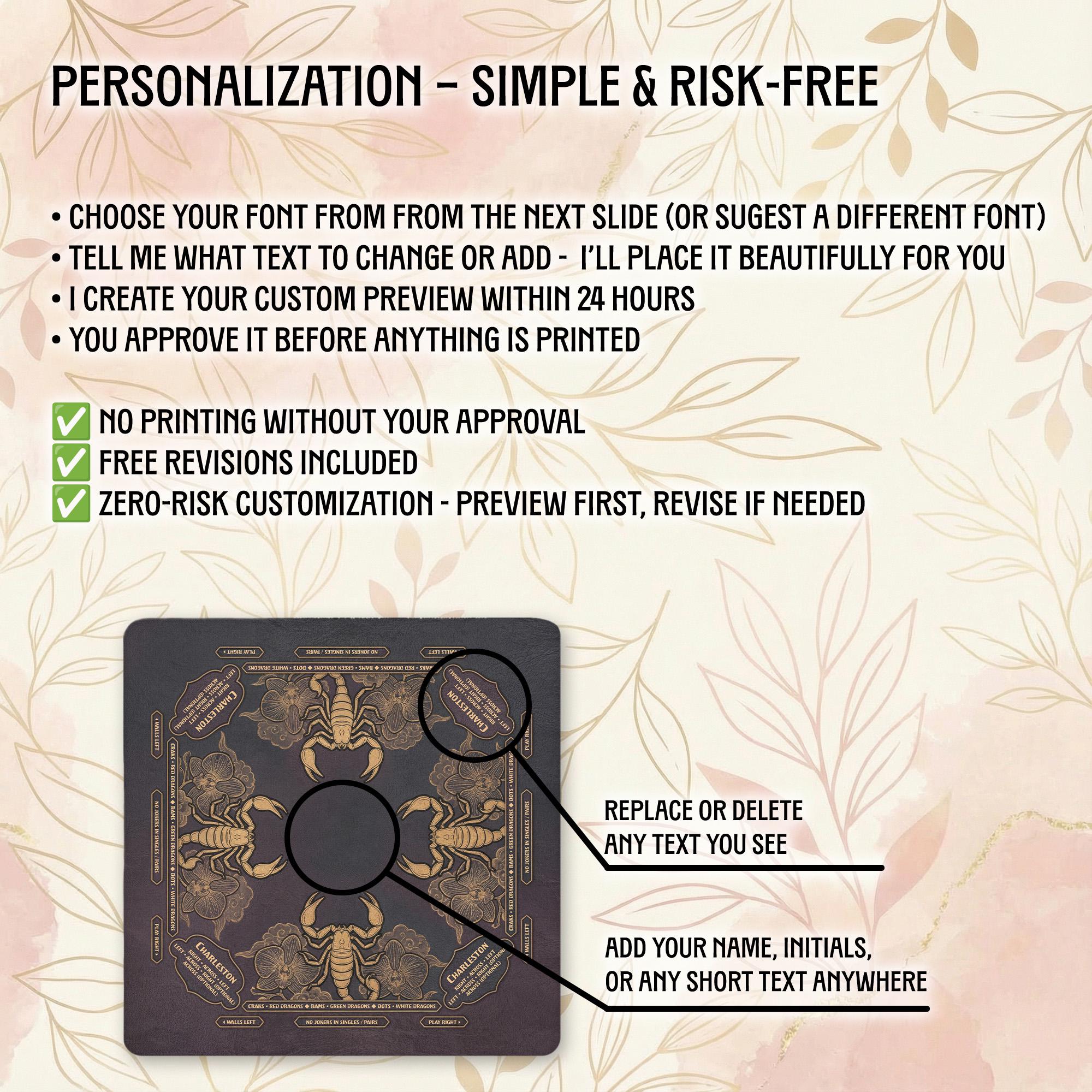 Our shop is dedicated to creating thoughtful, high-quality accessories that enhance your gaming moments. Each personalized Mahjong mat is carefully crafted with attention to detail and shipped promptly to bring joy to your game nights and special occasions.