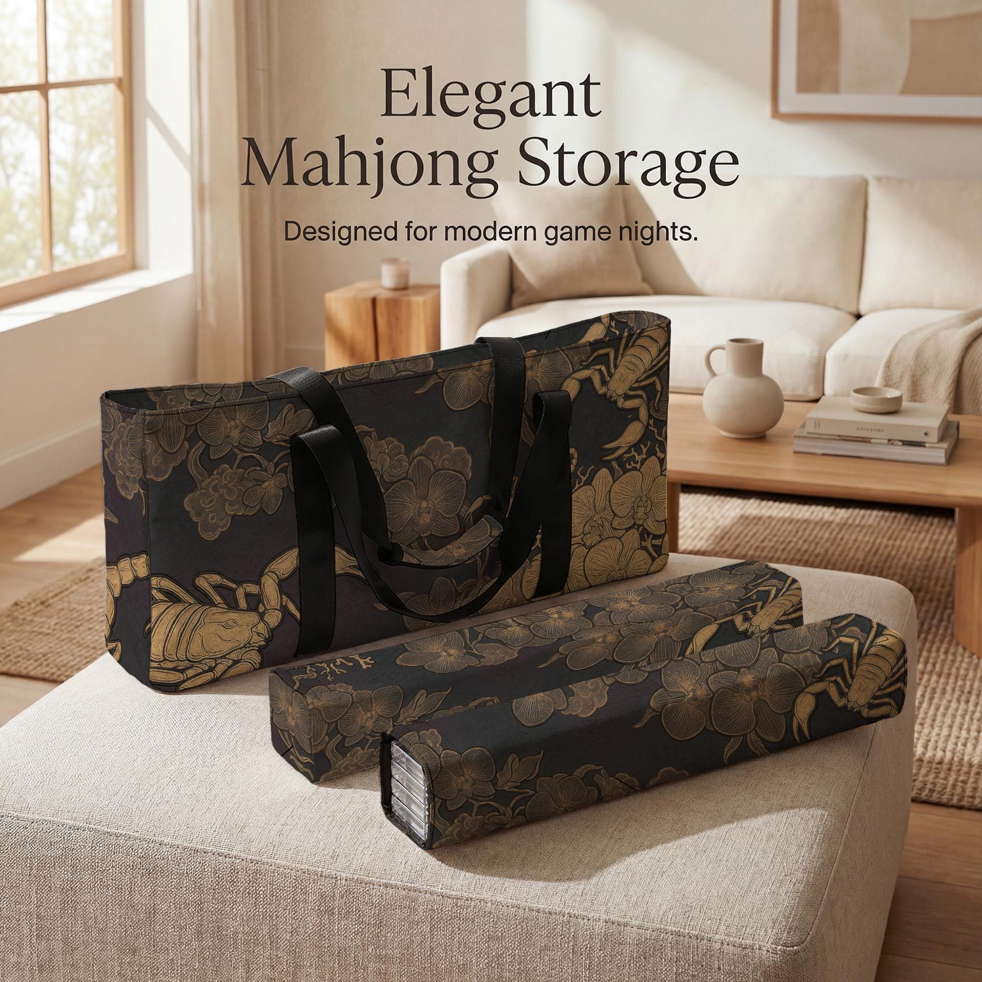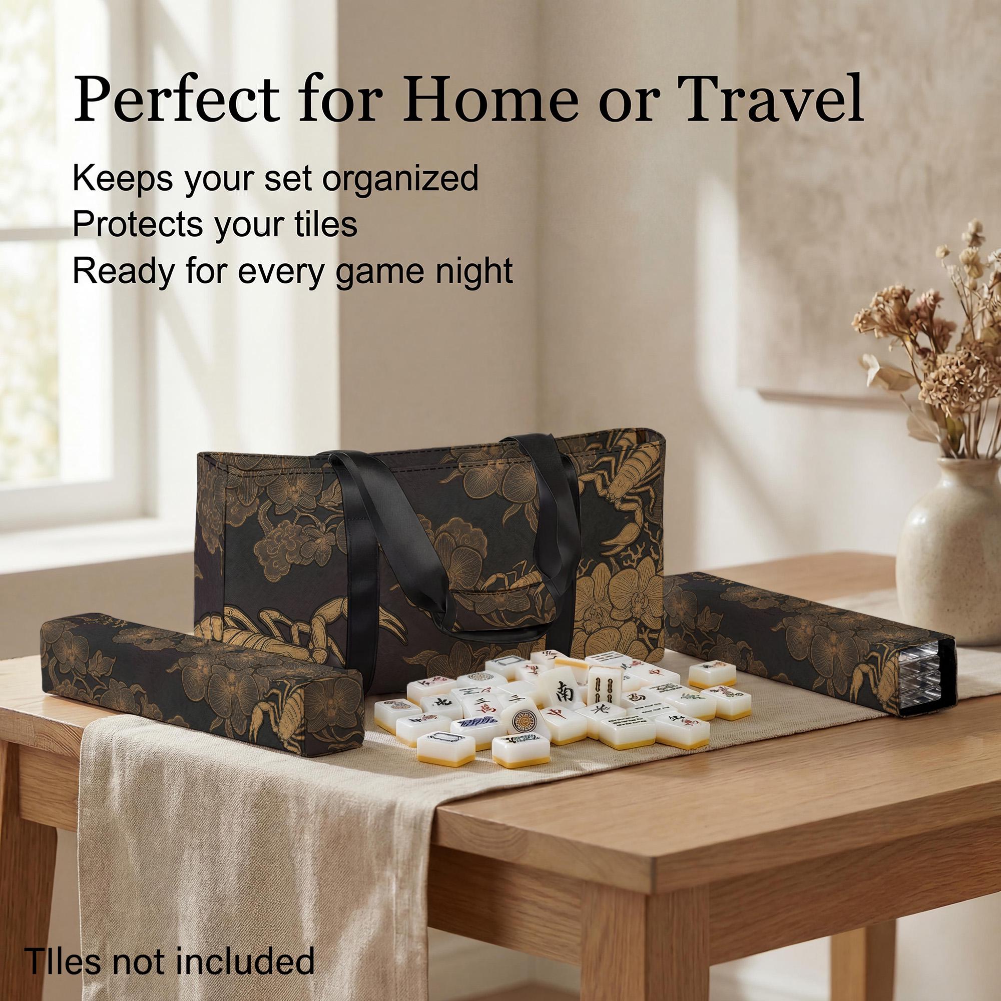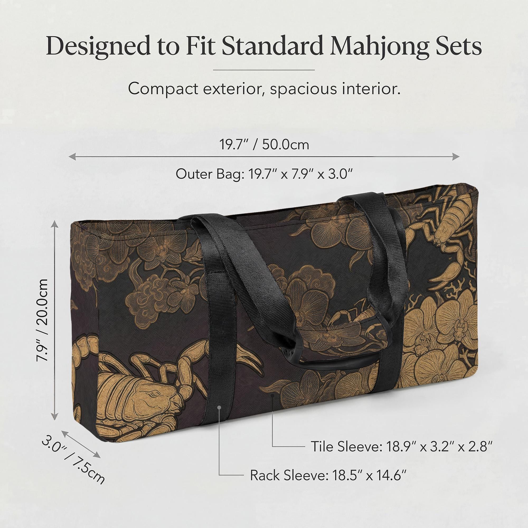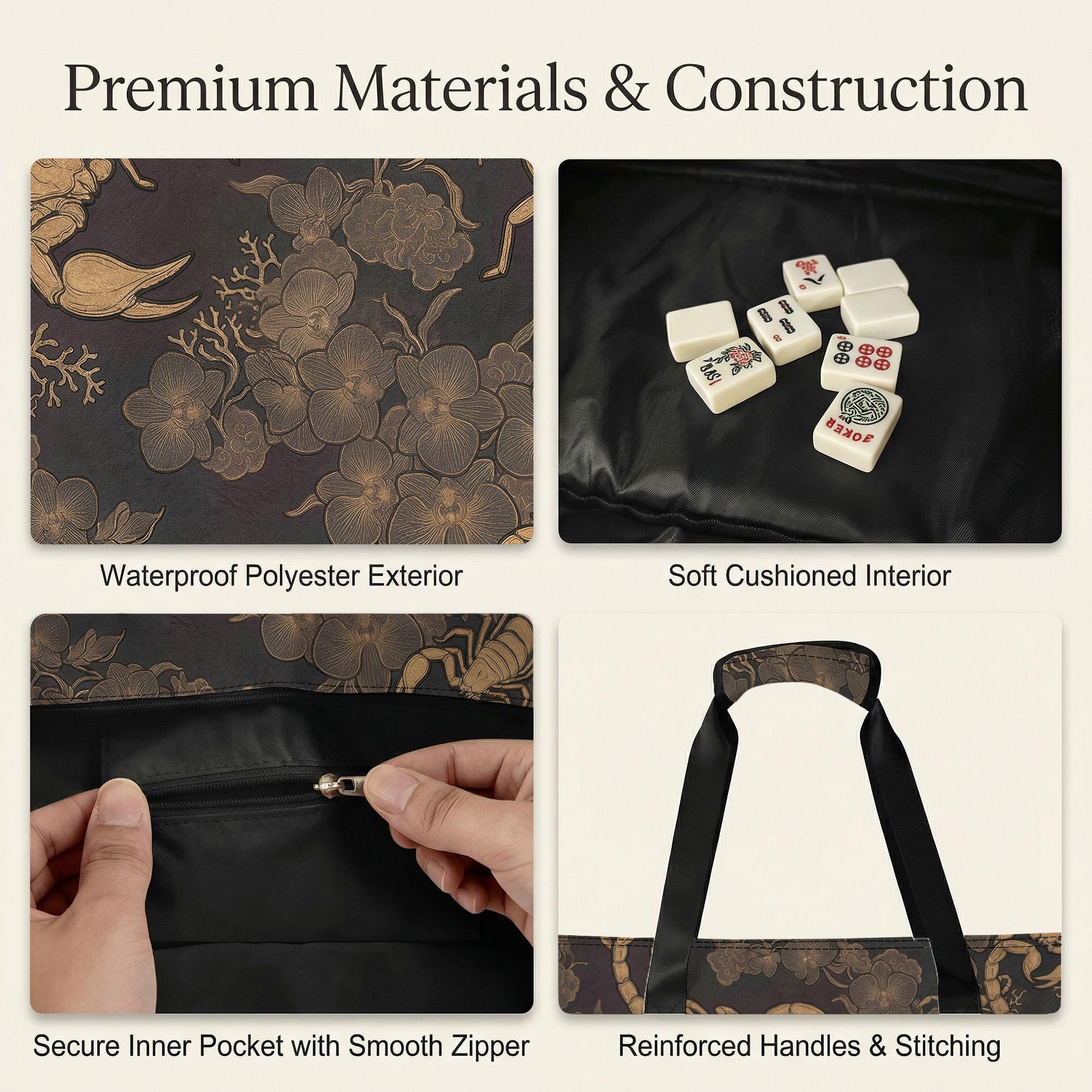 Discover the perfect blend of functionality and style with this Scorpio Mahjong Bag, designed as a lightweight travel case that keeps your game essentials impeccably organized. Crafted with a waterproof exterior and adorned with elegant gold scorpion art and floral motifs, this ornate organizer is ideal for Mahjong enthusiasts who value both protection and aesthetic appeal. Whether heading to a game night or Mahjong club, this portable tile bag ensures your tiles, racks, and pushers stay secure and ready for play.