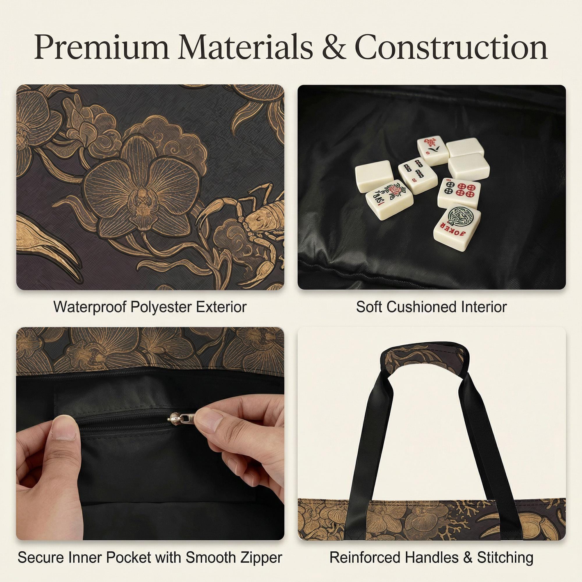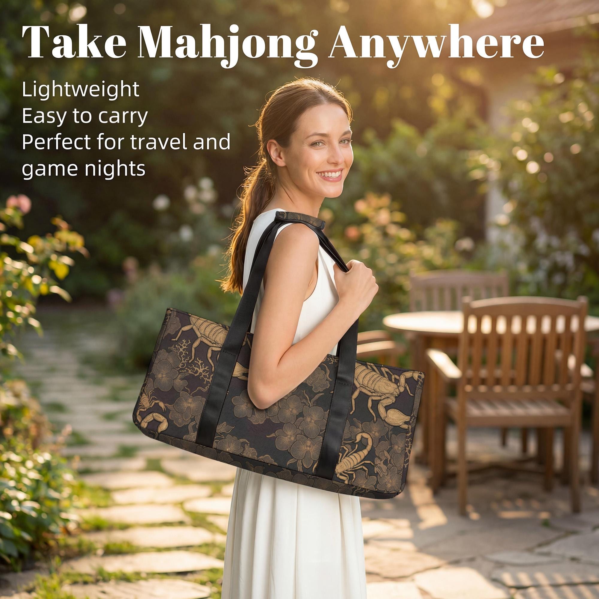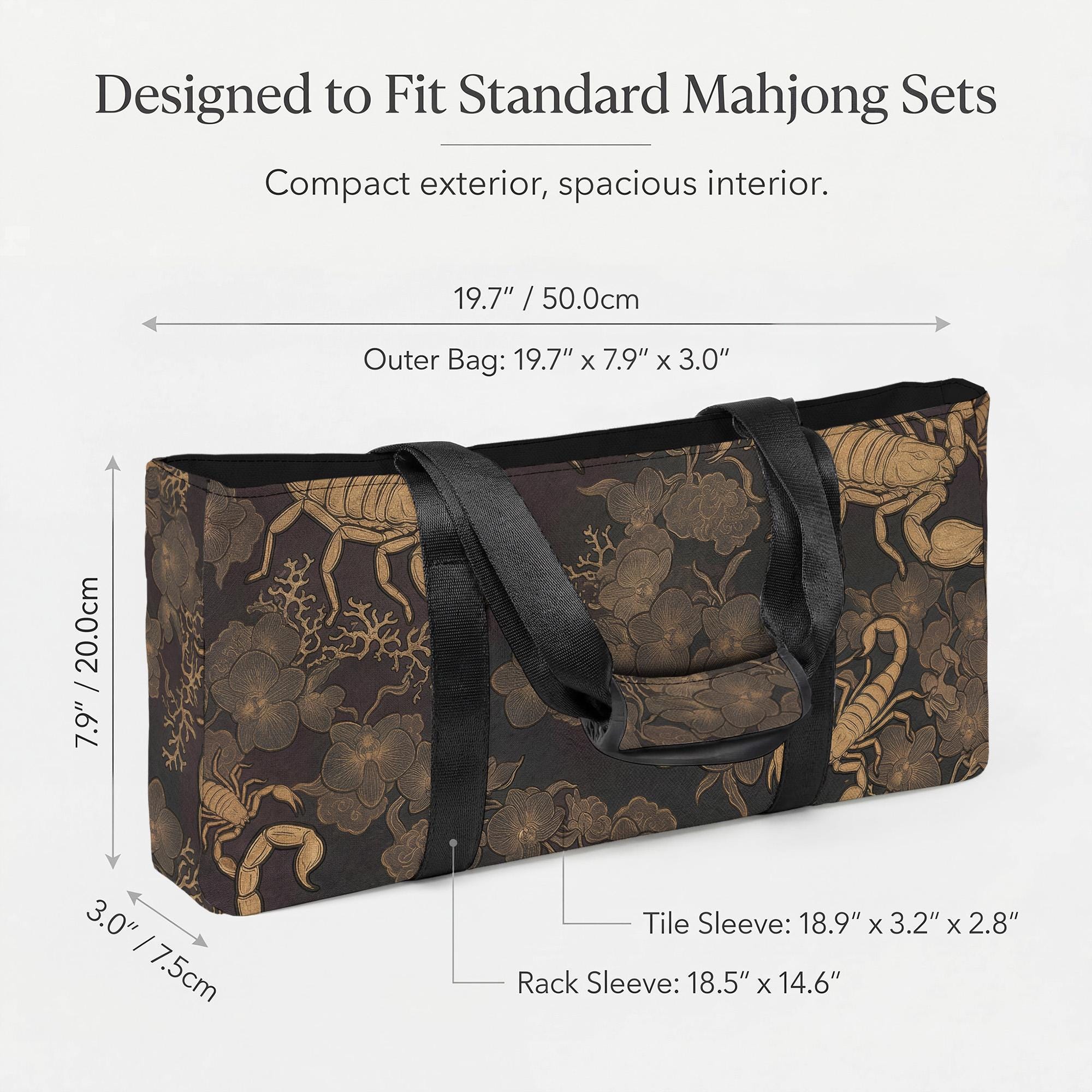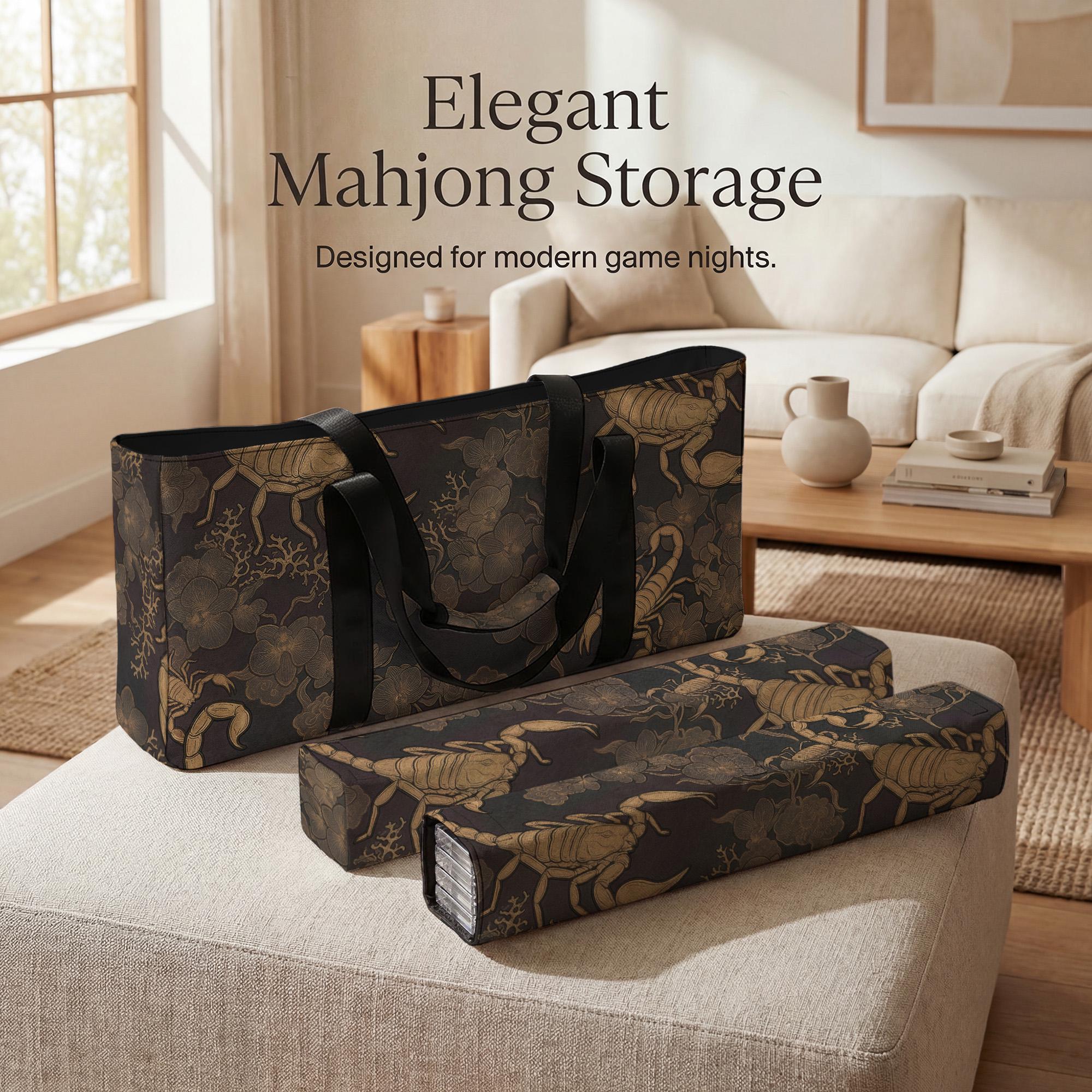 Discover the perfect blend of functionality and style with this Scorpio Mahjong Bag, designed as a lightweight travel case that keeps your game essentials impeccably organized. Crafted with a waterproof exterior and adorned with elegant gold scorpion art and floral motifs, this ornate organizer is ideal for Mahjong enthusiasts who value both protection and aesthetic appeal. Whether heading to a game night or Mahjong club, this portable tile bag ensures your tiles, racks, and pushers stay secure and ready for play.