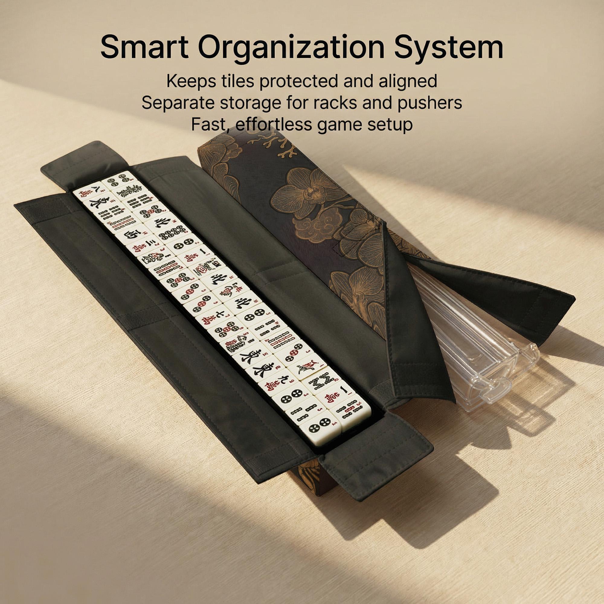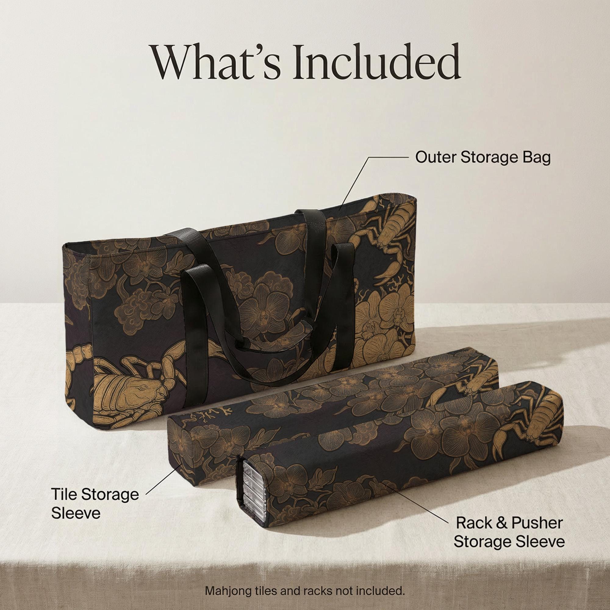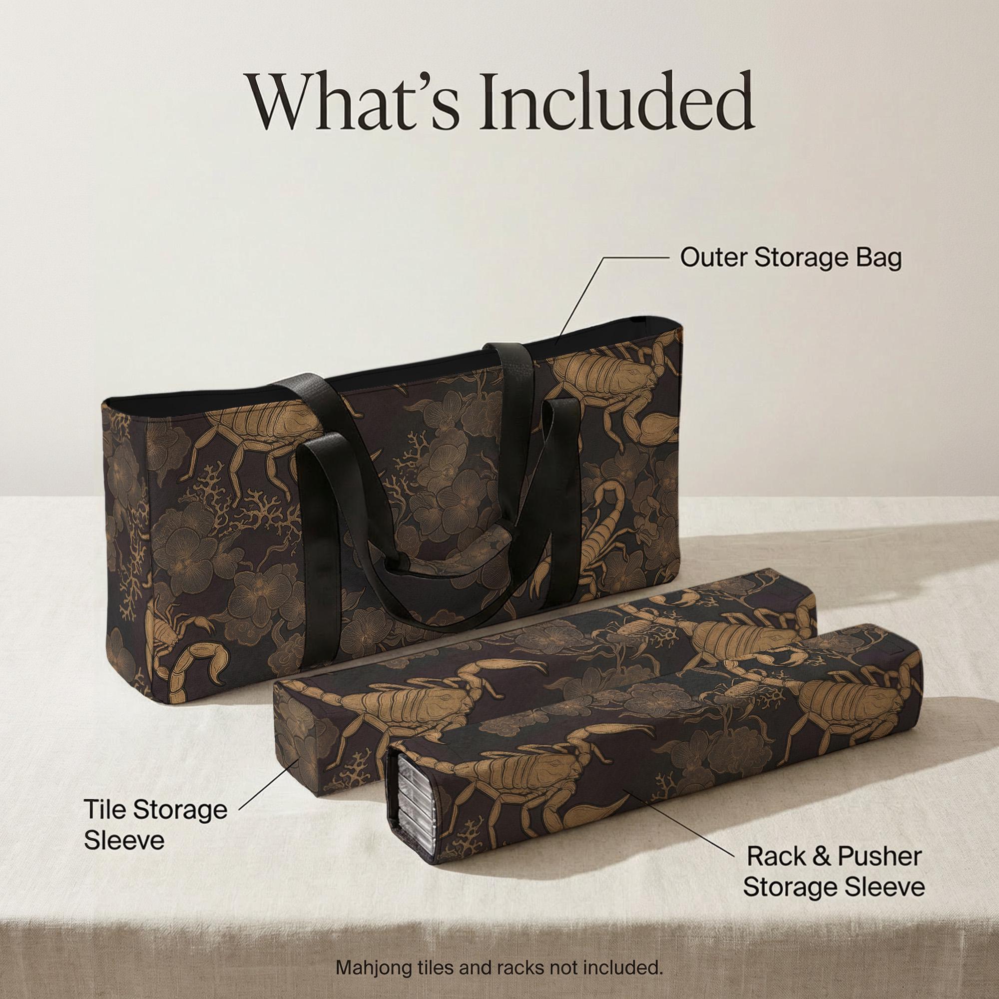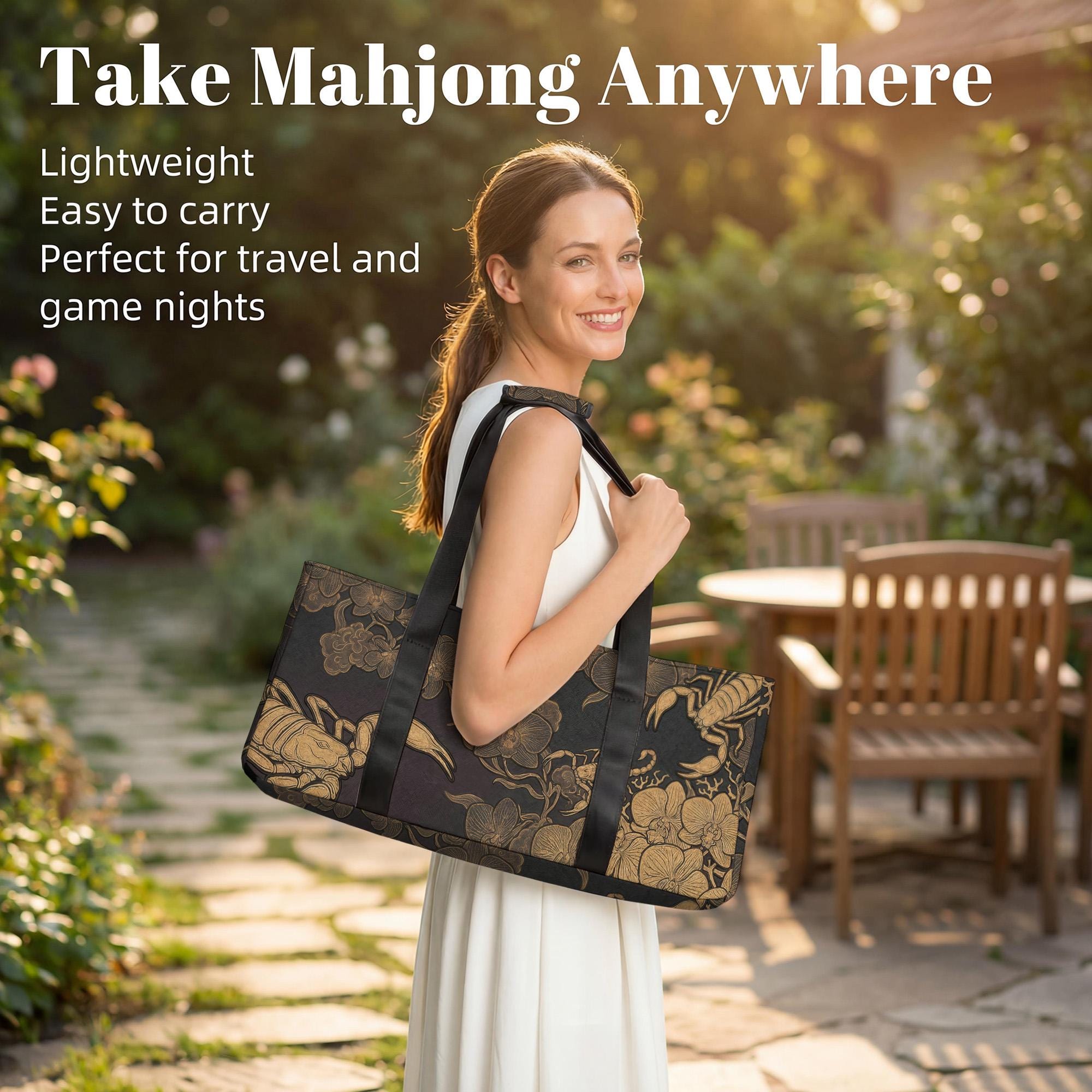 Discover the perfect blend of functionality and style with this Scorpio Mahjong Bag, designed as a lightweight travel case that keeps your game essentials impeccably organized. Crafted with a waterproof exterior and adorned with elegant gold scorpion art and floral motifs, this ornate organizer is ideal for Mahjong enthusiasts who value both protection and aesthetic appeal. Whether heading to a game night or Mahjong club, this portable tile bag ensures your tiles, racks, and pushers stay secure and ready for play.