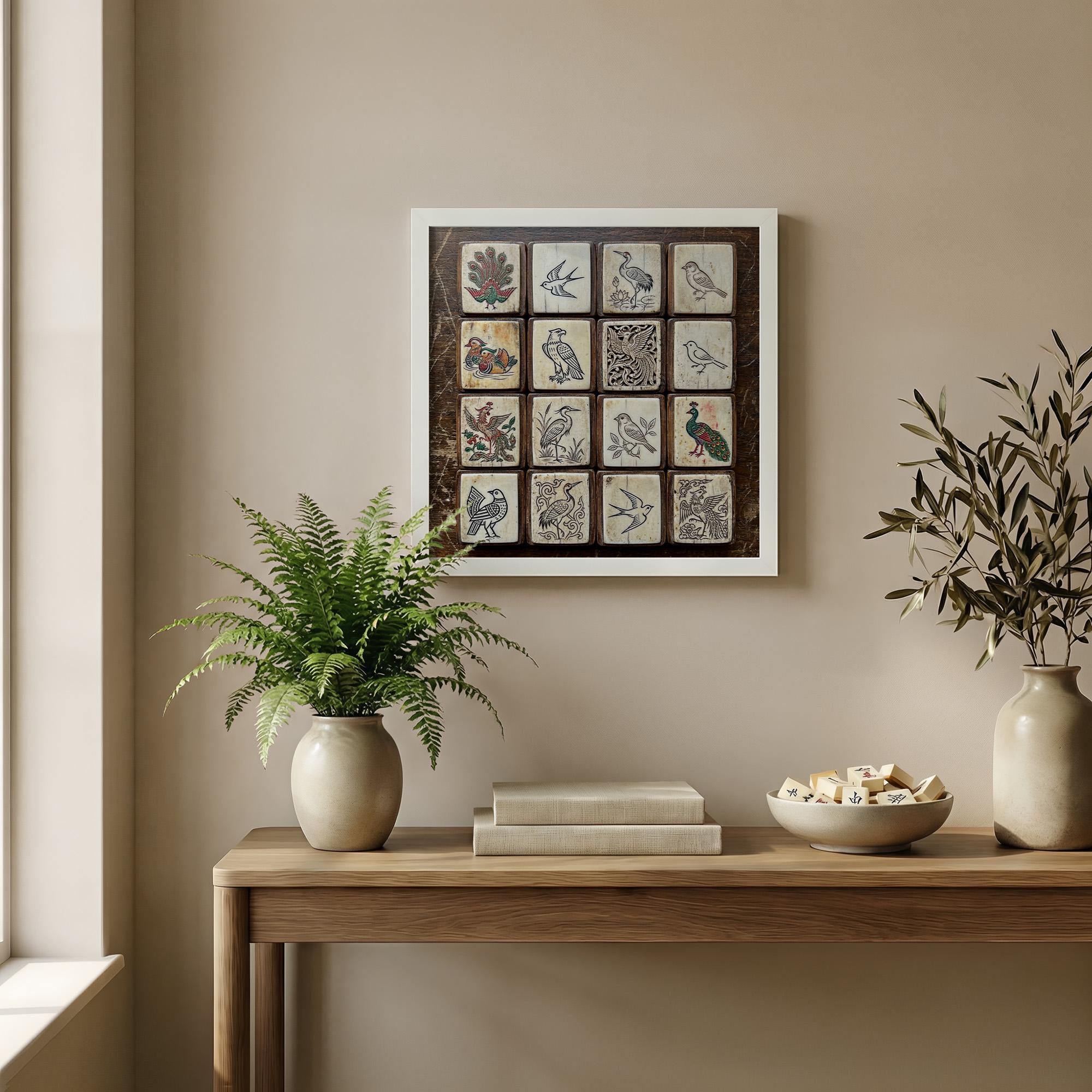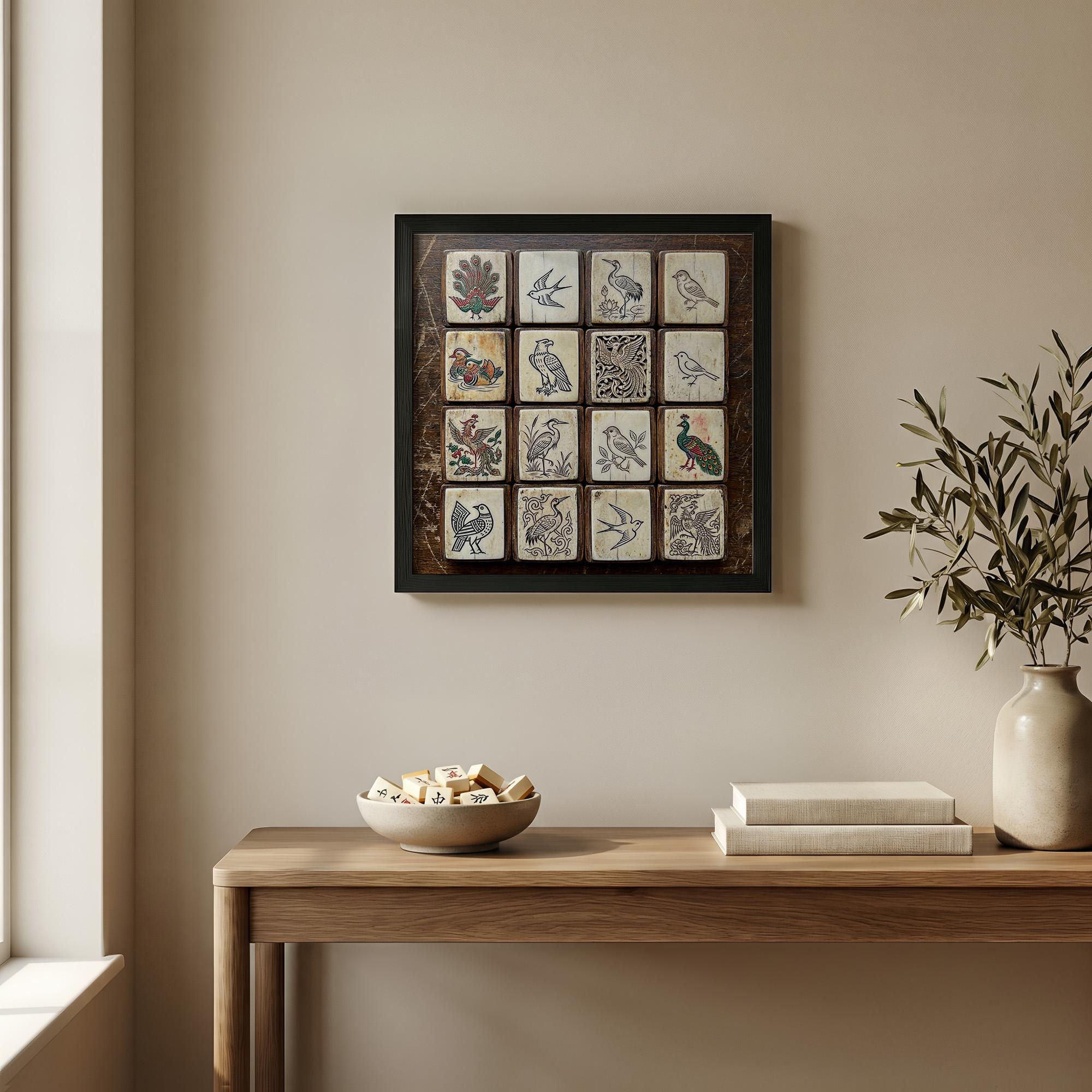Discover the timeless charm of traditional mahjong with this exquisite wall art featuring a 16 bird tile grid. Inspired by vintage game art and crafted with meticulous attention to detail, this piece beautifully captures the elegance of avian illustrations in a chinoiserie style. Perfect for game room decor or as a thoughtful mahjong gift, it brings a sophisticated touch to any home gallery.