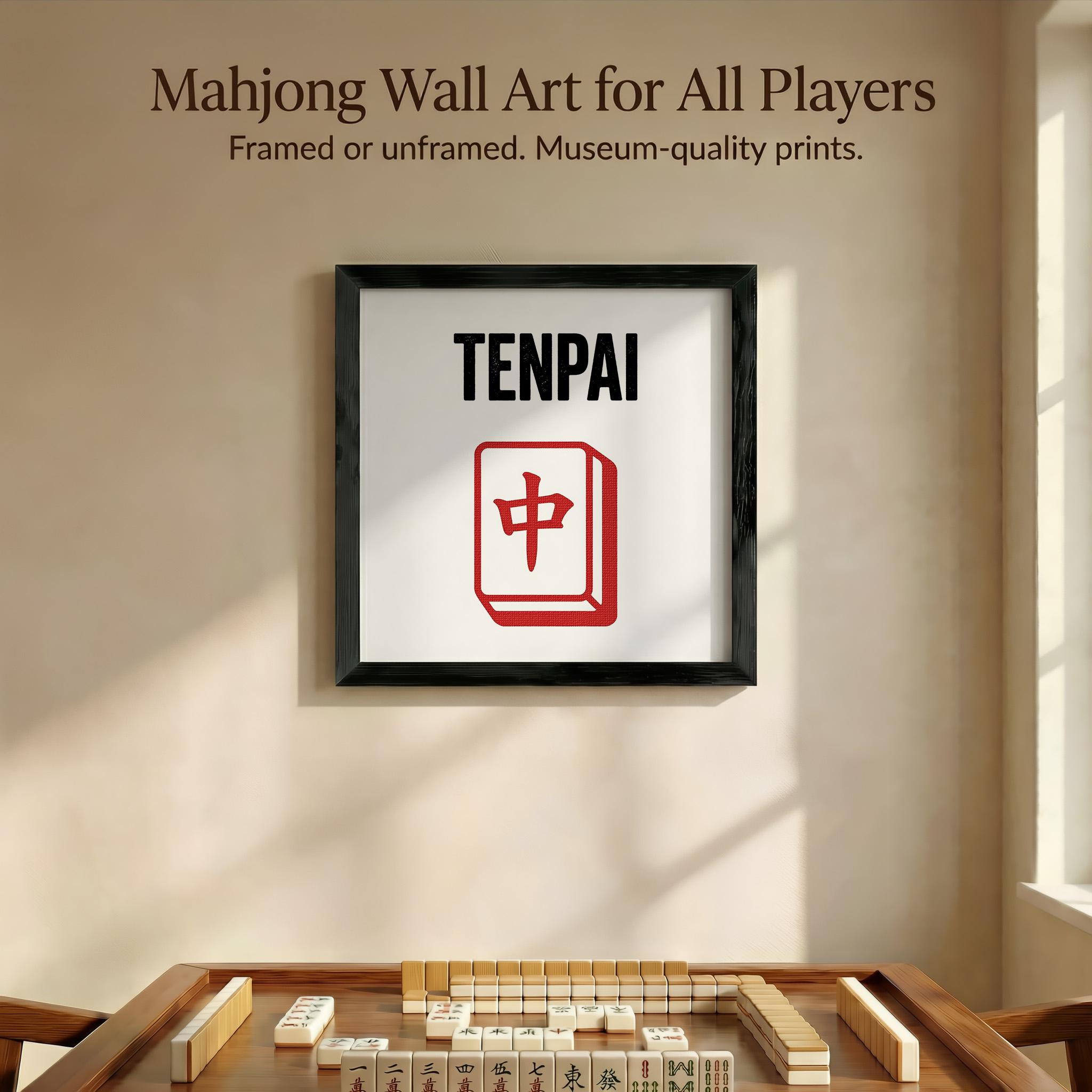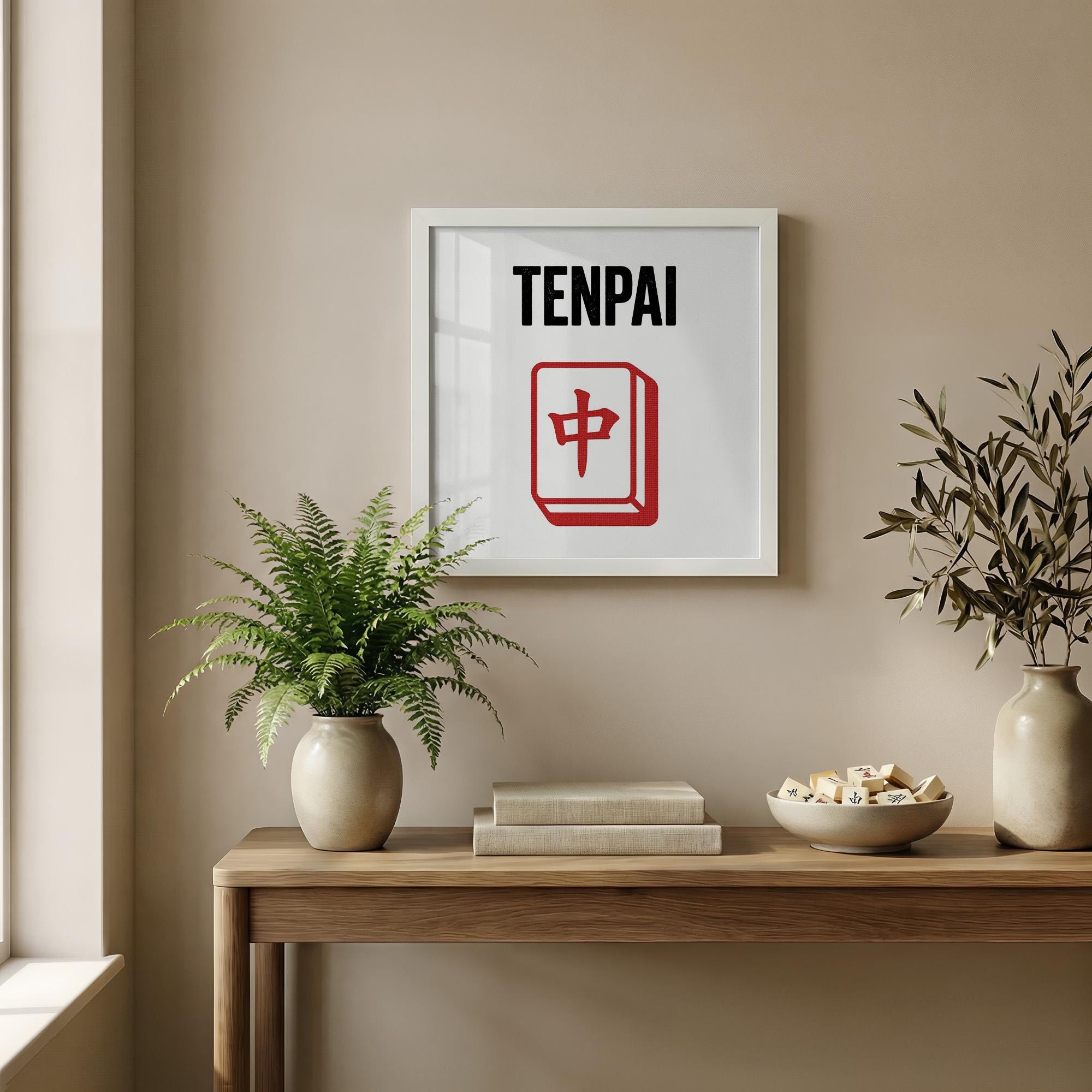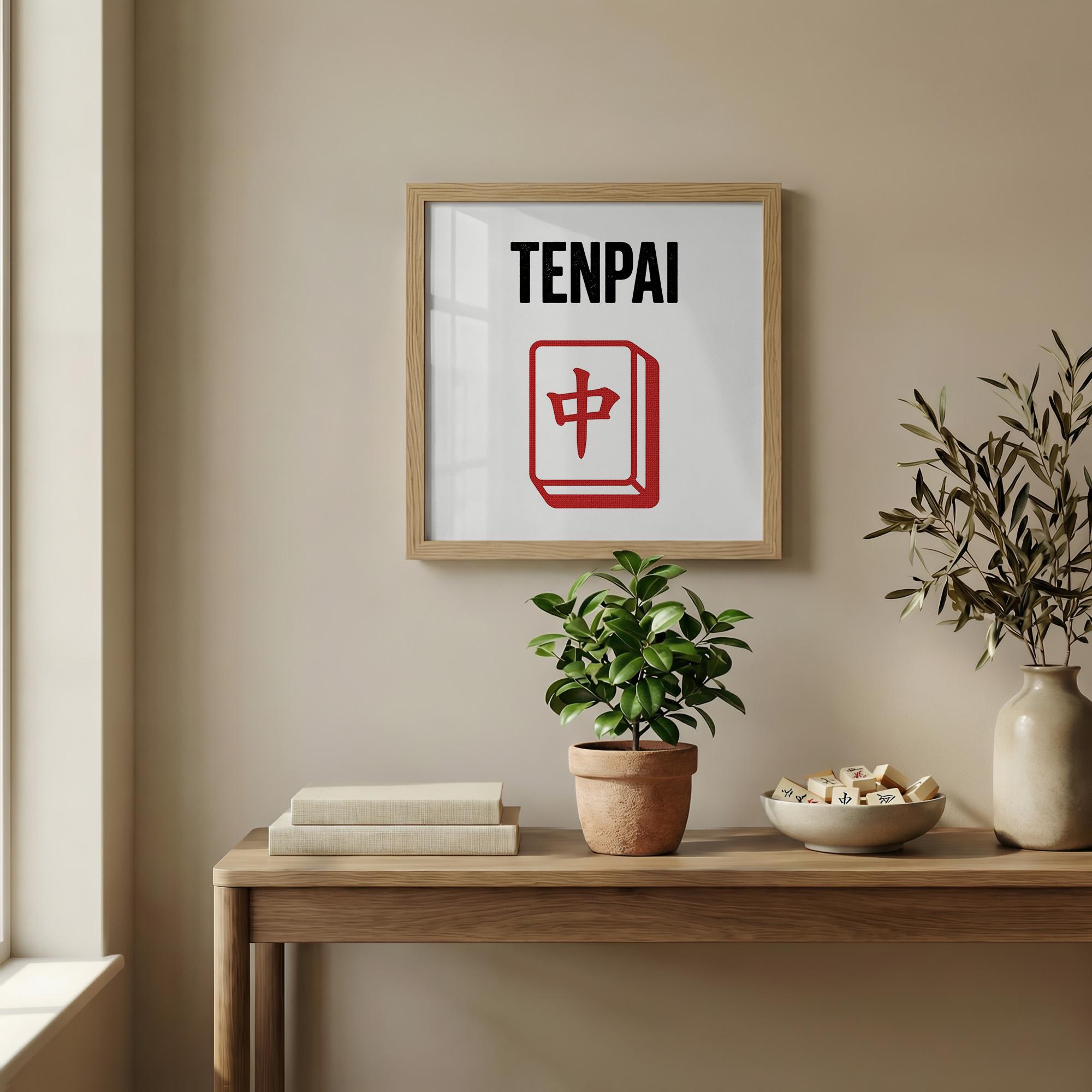 Celebrate the thrill of being one tile away from victory with this bold "TENPAI" typography print featuring a classic Red Dragon icon. Printed on museum-quality archival paper and available with premium solid wood framing, this minimalist piece is the ultimate statement for any dedicated player's home gallery.