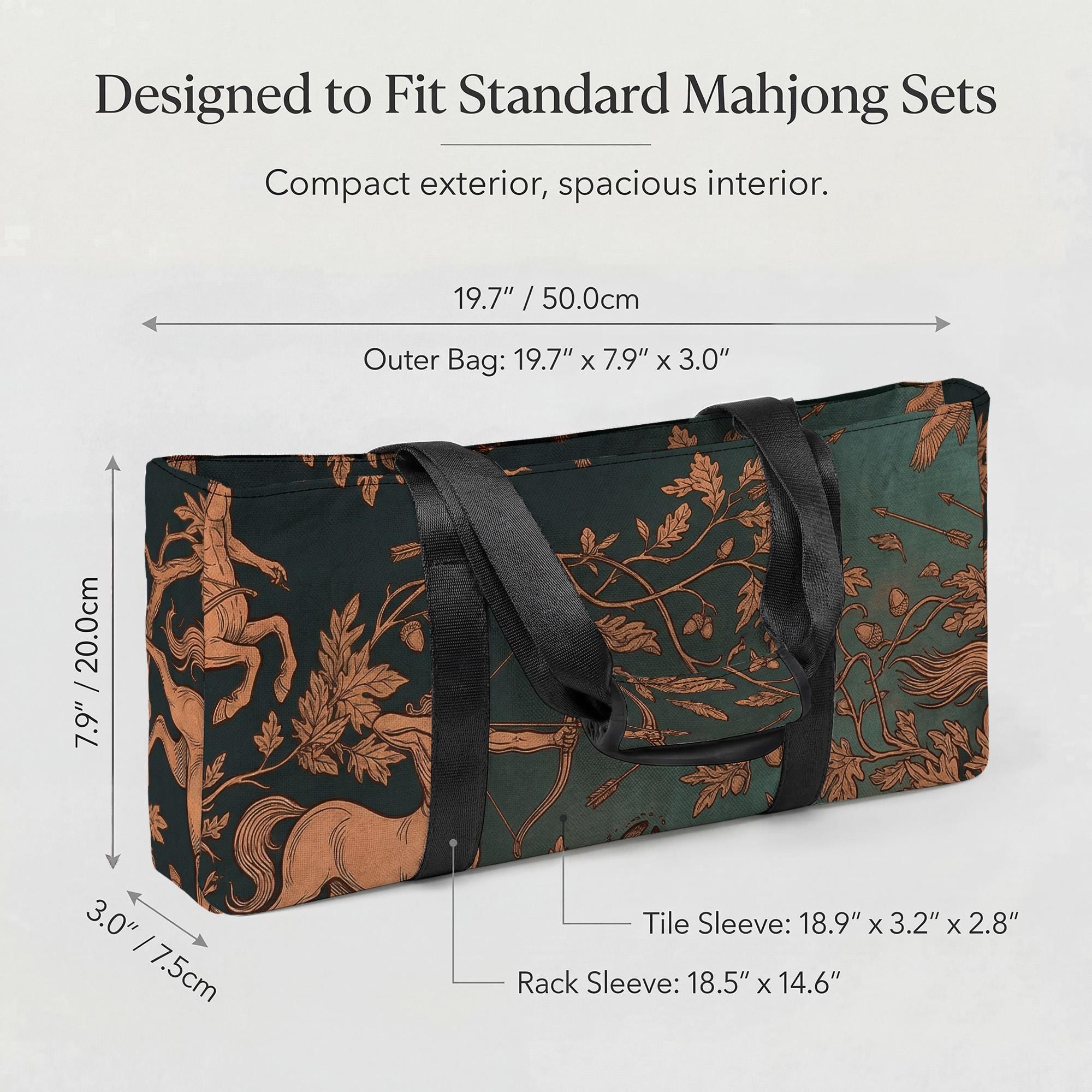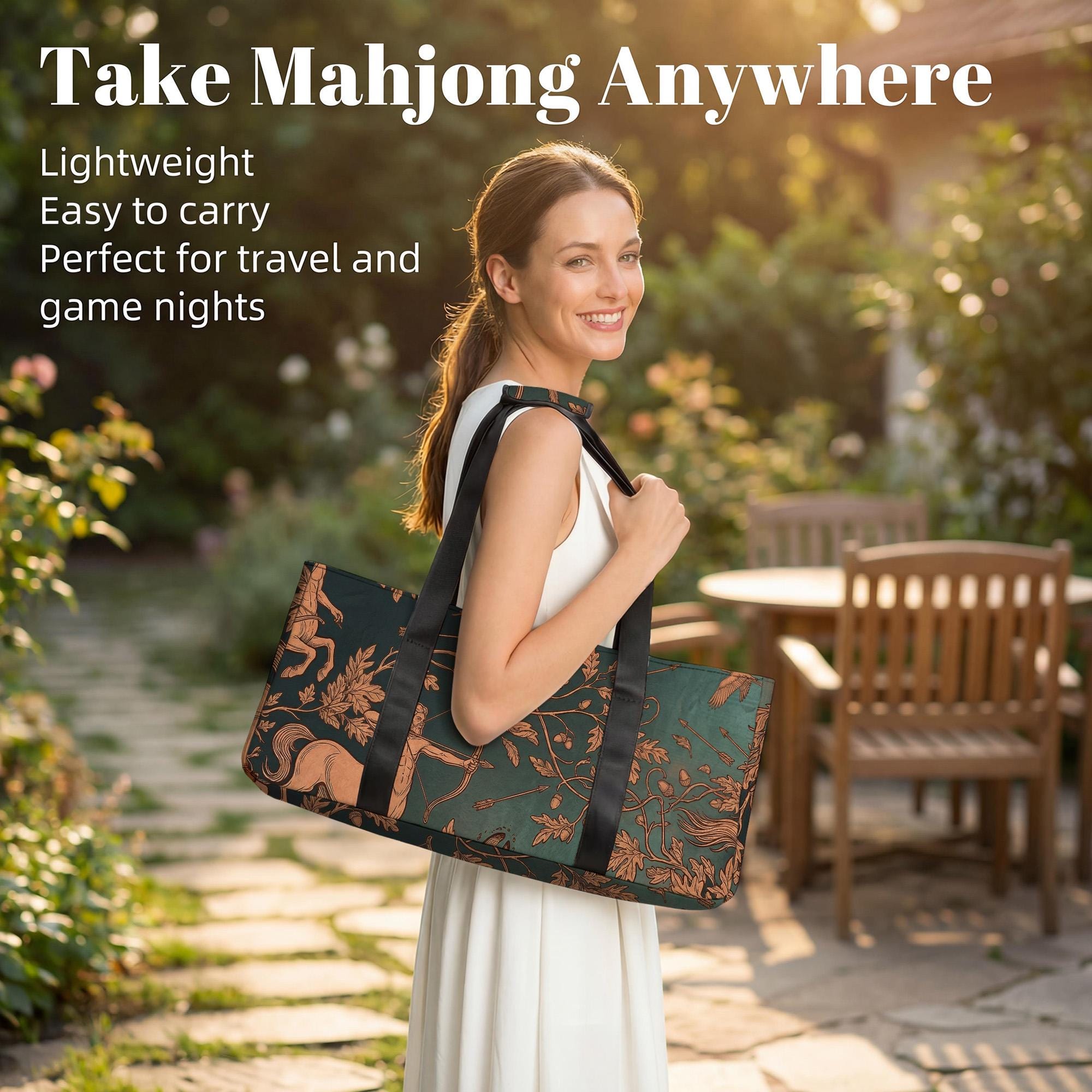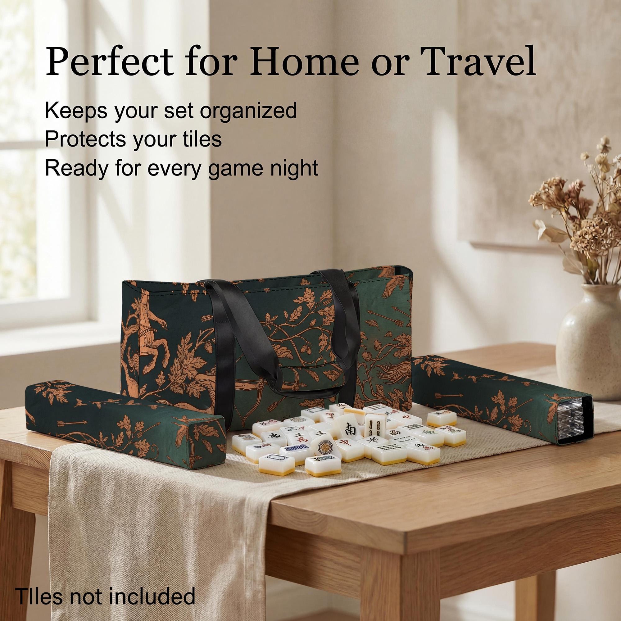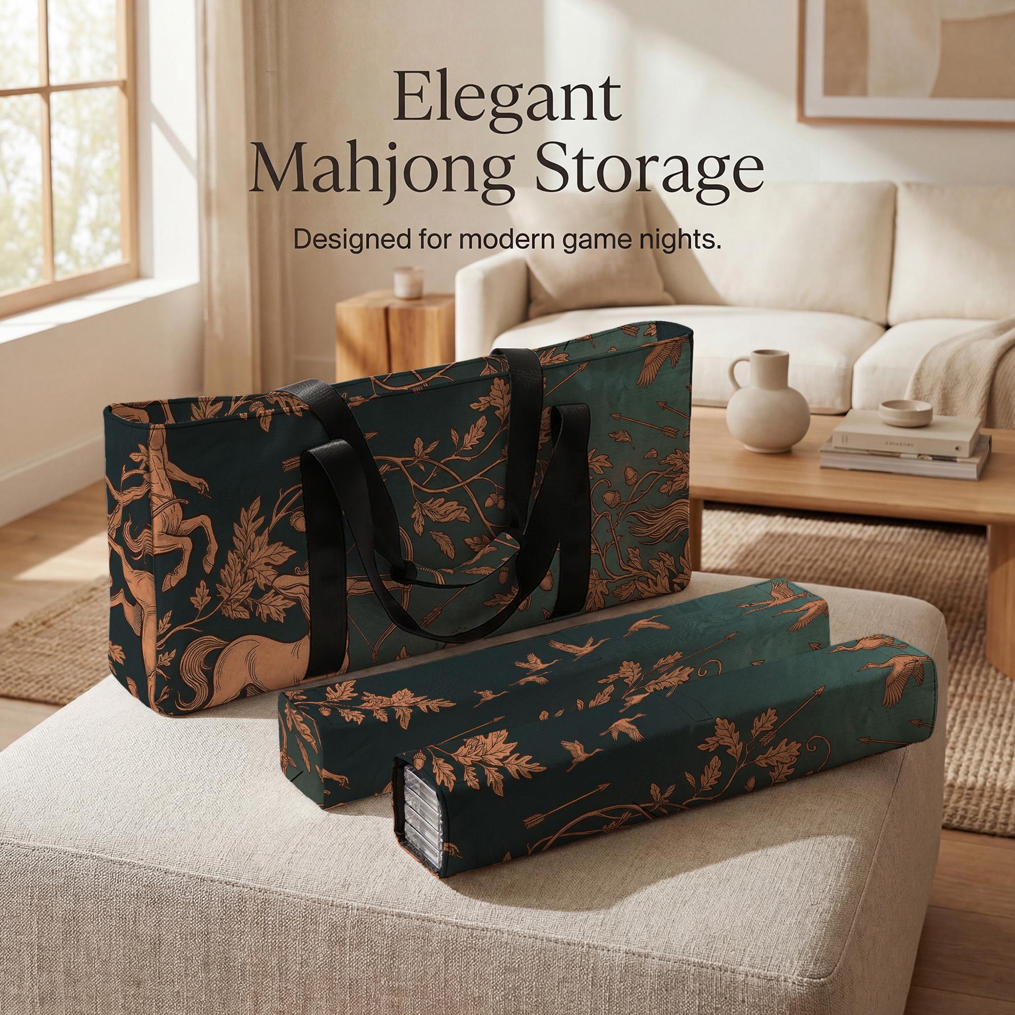 Experience the perfect blend of style and function with this mahjong tile storage set, designed for the avid player on the go. Featuring a striking teal centaur zodiac motif, this travel-friendly case keeps your game essentials organized and protected wherever you play. Whether heading to a game night or club gathering, this cushioned tote bag offers durable, secure storage with thoughtful details that elevate your mahjong experience.