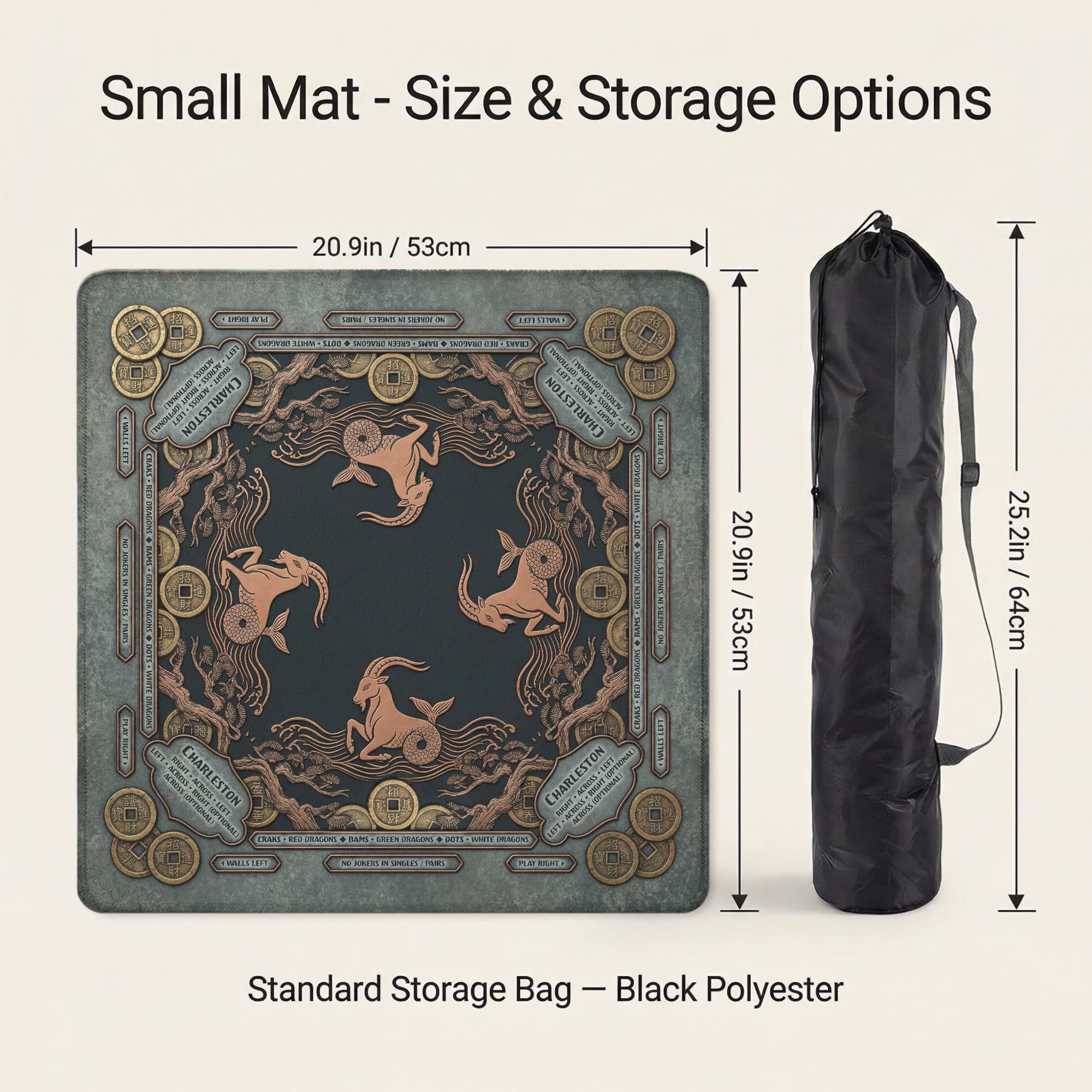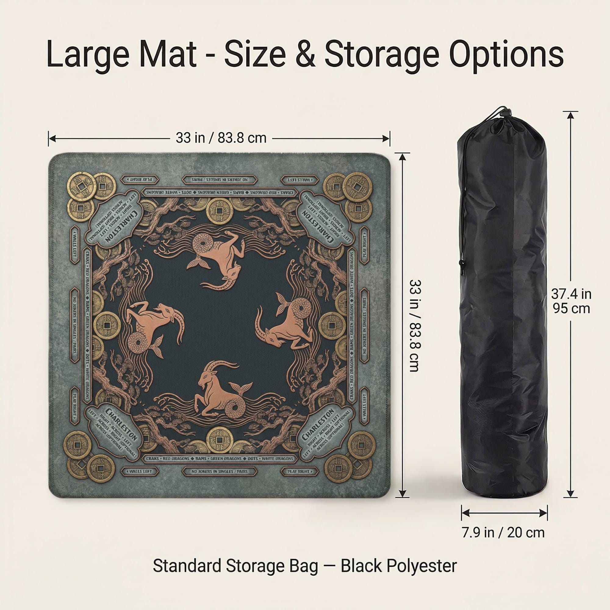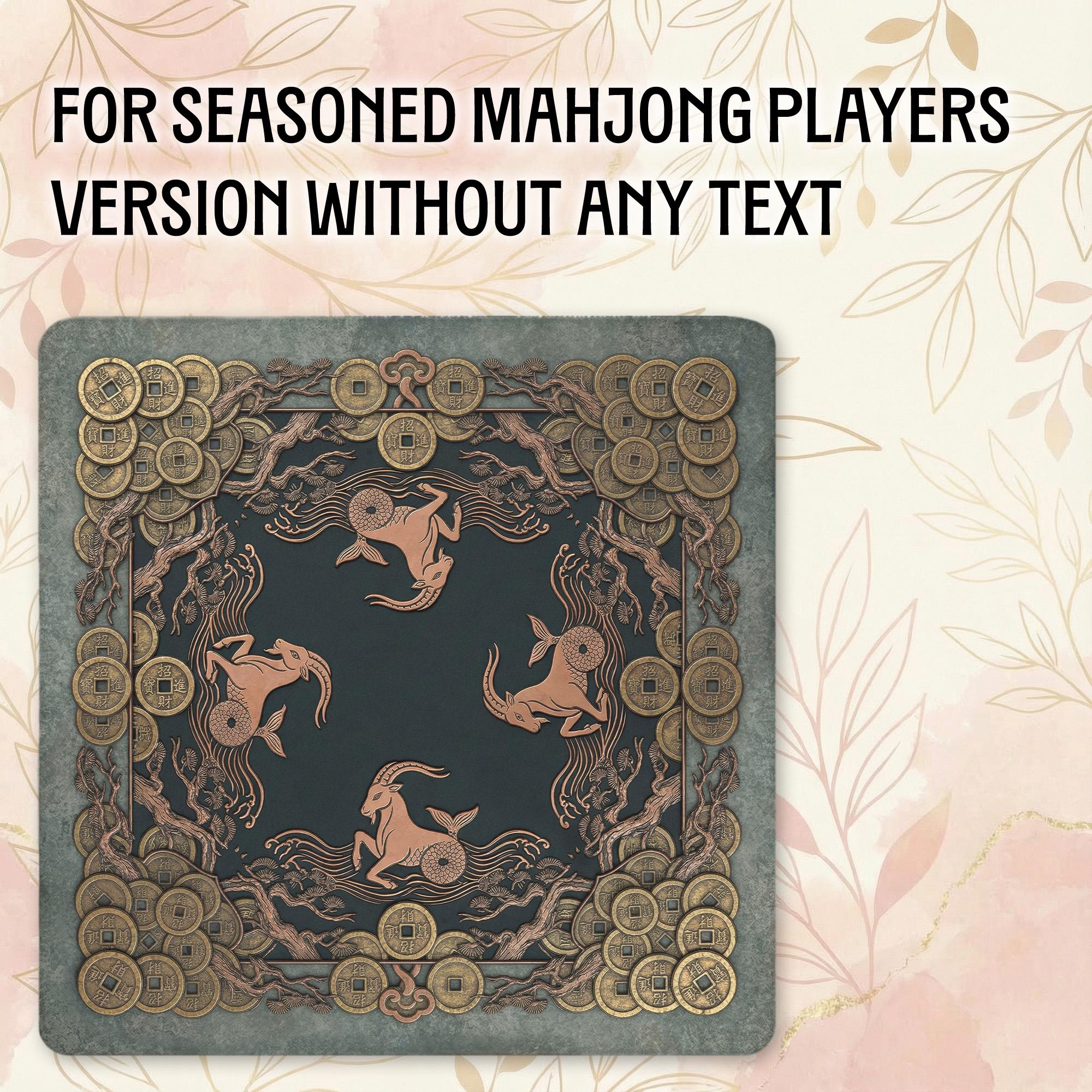 This premium Mahjong mat features an intricate Capricorn sea-goat design adorned with vintage coins and celestial waves in a sophisticated antique gold and teal palette. Fully customizable with your name or initials, this noise-reducing waterproof mat features a non-slip rubber backing to ensure a smooth, focused, and elegant gaming experience.