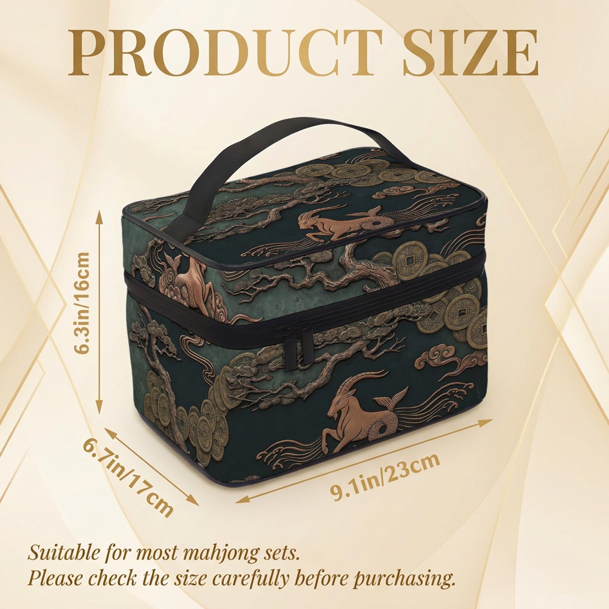 Inspired by the elegance of astrology and the timeless charm of mahjong, this Capricorn zodiac tile bag blends style and function effortlessly. Crafted with a striking teal and gold palette, this travel storage bag features a detailed sea goat design that makes it a unique player gift for enthusiasts who appreciate both art and practicality. Whether you're heading to a game night or organizing your game room storage, this portable tile case offers a perfect balance of durability and sophistication.