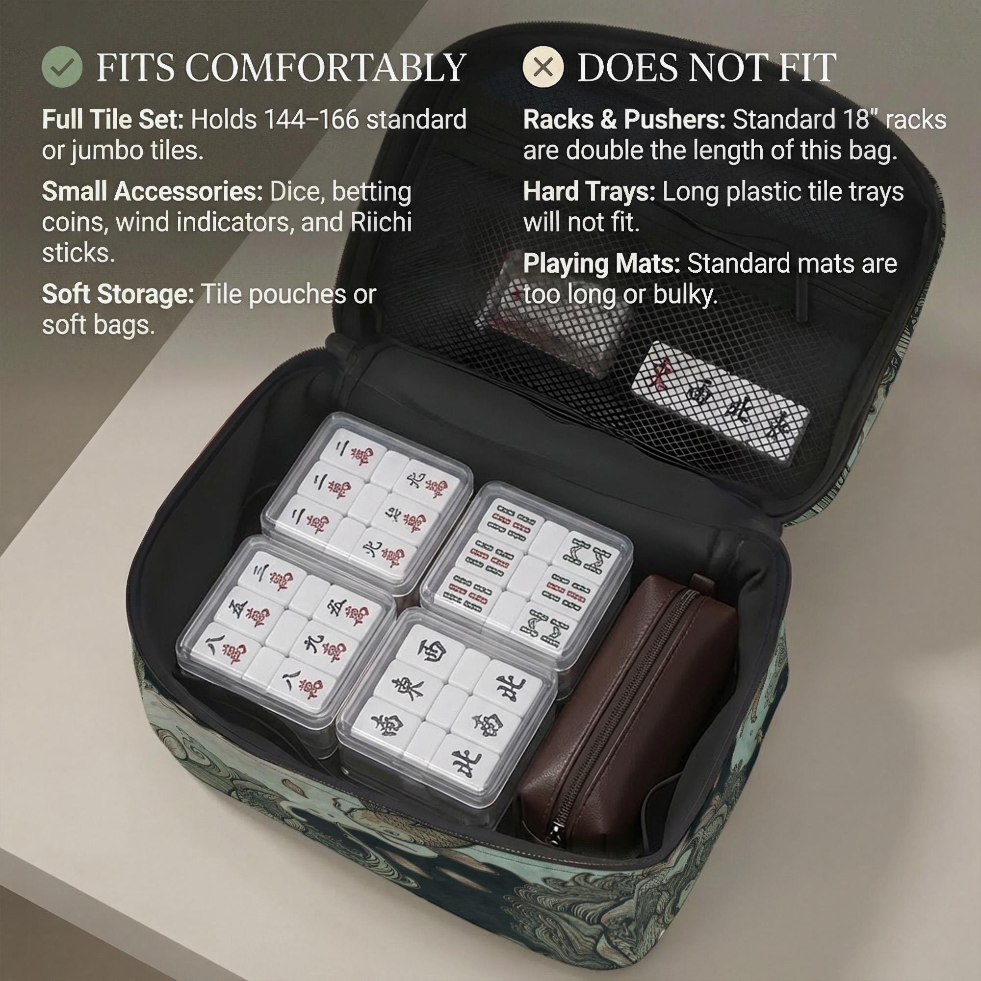 β’ Mahjong tiles and accessories are NOT included