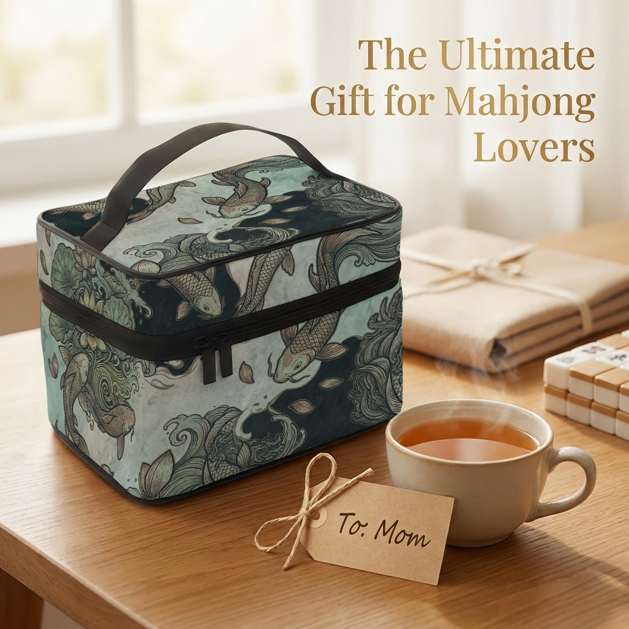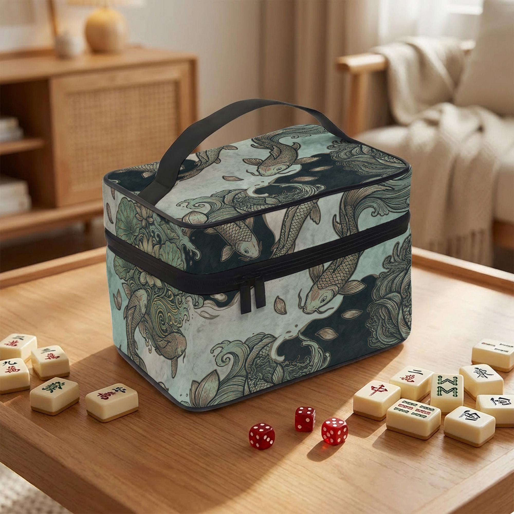 Discover the perfect blend of artistry and functionality with this Pisces zodiac gift, featuring a serene koi fish bag design in elegant teal and gold tones. Crafted for mahjong enthusiasts who appreciate a unique player gift, this structured carry bag offers both style and practicality for travel storage needs. Whether heading to game night or club play, this ornate game bag keeps your tiles organized and protected with ease.