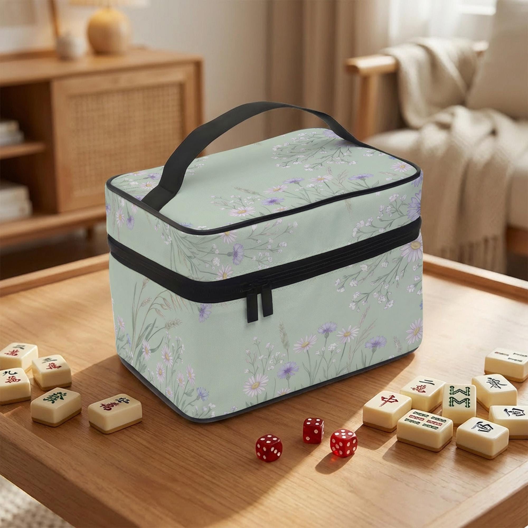 Step into your next game night with a touch of elegance and practicality, inspired by the delicate beauty of field flowers and the timeless charm of botanical decor. This mauve travel bag offers a stylish yet structured way to carry your Mahjong tiles, blending function with floral grace. Designed for the discerning player, it features a secure zippered tile case that makes organizing and transporting your set effortless.