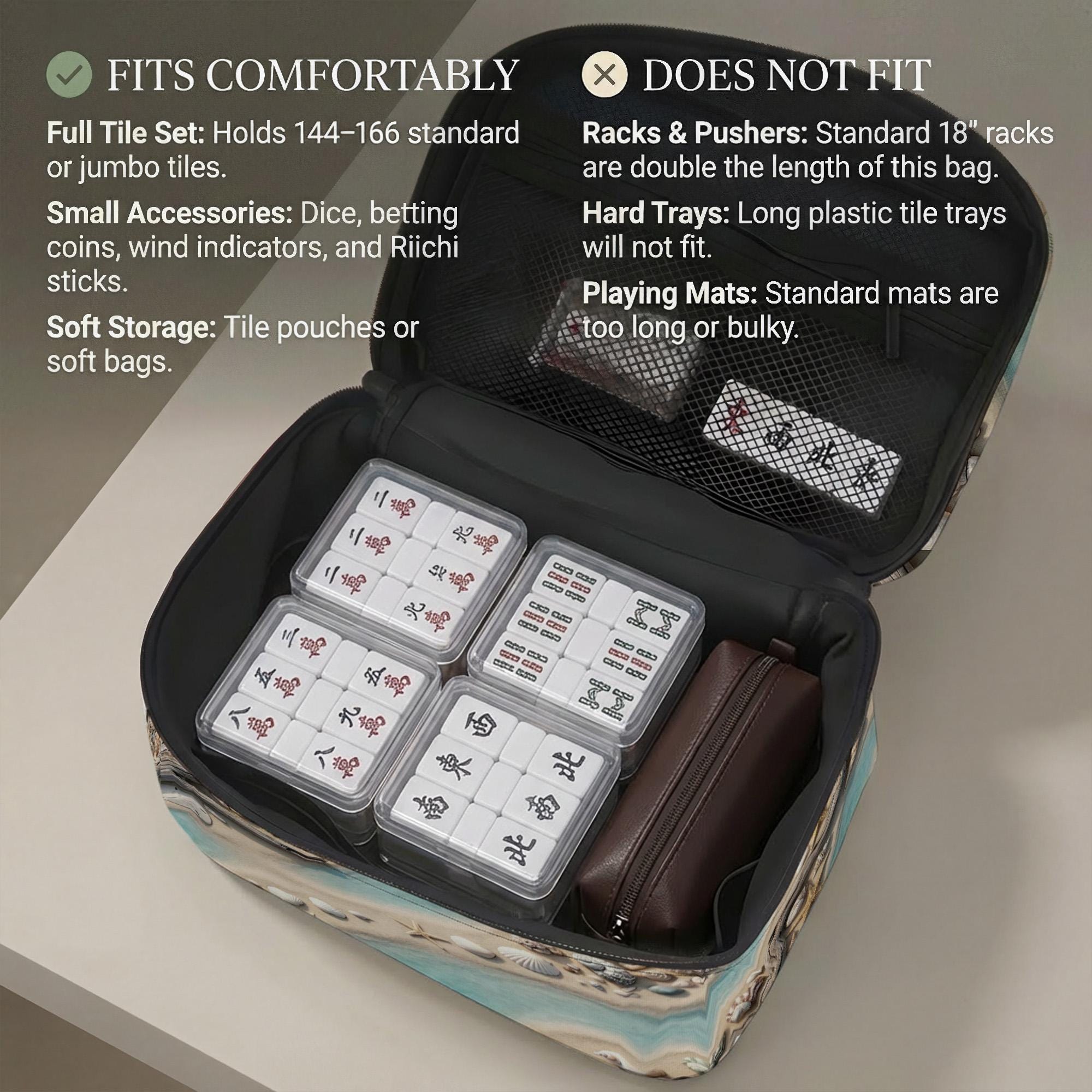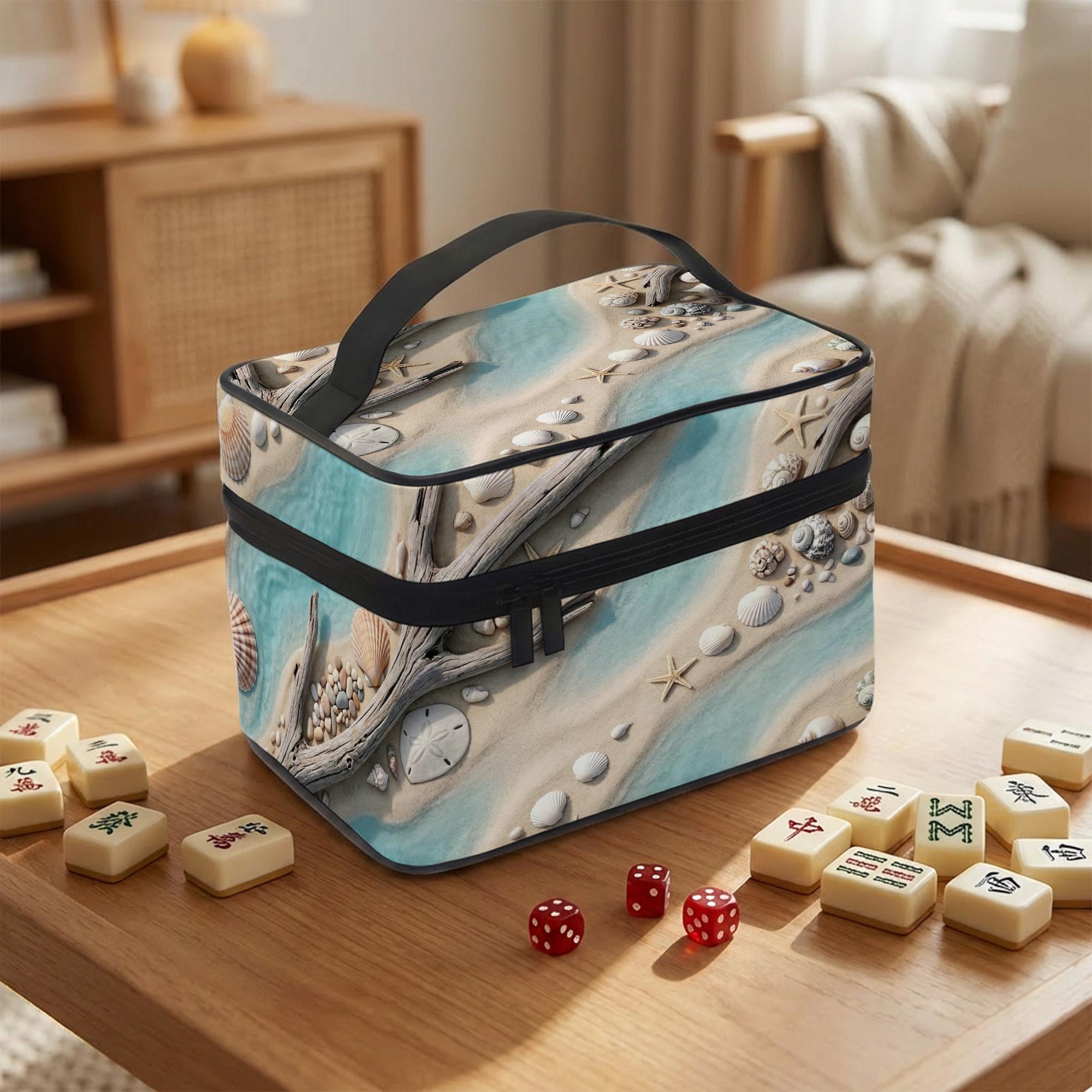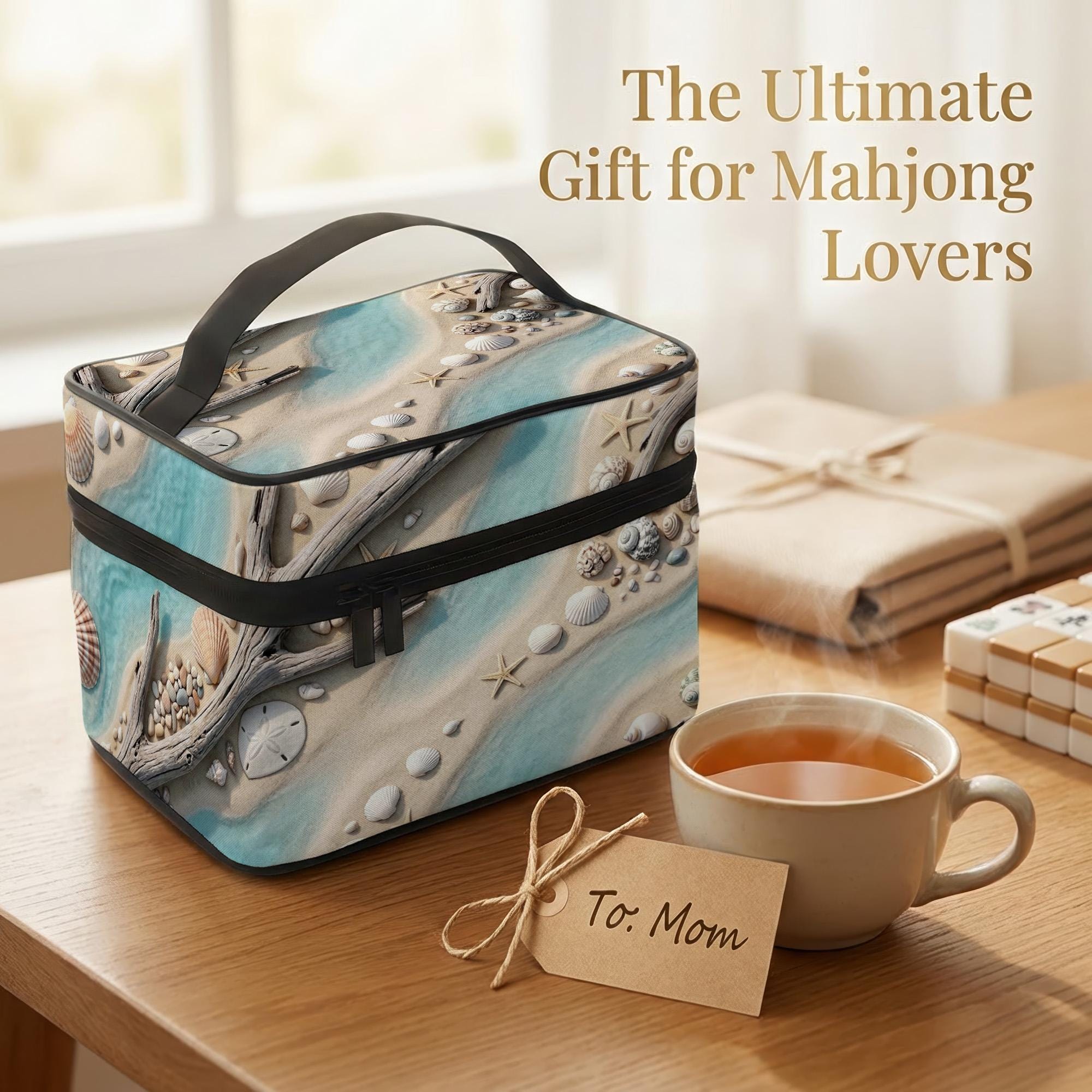 Immerse yourself in the serene charm of coastal game night with this beautifully designed mahjong travel bag, inspired by the soothing seaside tile carrier motifs of seashells and starfish. Crafted to enhance your gaming experience, this bag combines practical luxury with a beachy gift for mom or any enthusiast who treasures nautical organizer style. Whether you're heading to a summer vacation or simply enjoying a game at the beach house, this case brings both elegance and function to your favorite pastime.