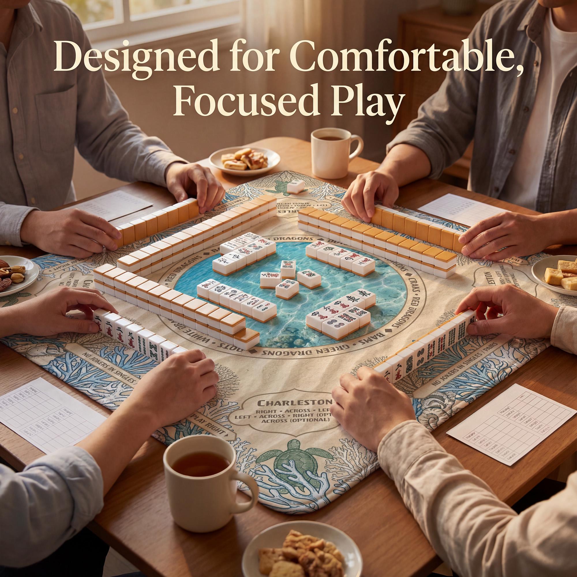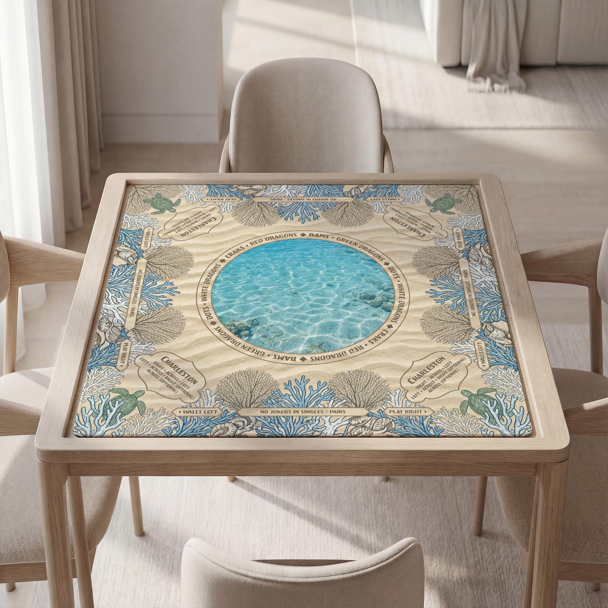 Immerse yourself in the tranquil beauty of the ocean with this custom mahjong mat, inspired by coastal sea turtles and vibrant coral reef decor. Designed to enhance your game night, this waterproof table top features a noise reducing base and a non slip backing, ensuring both style and functionality. Whether youβre gathering with friends or seeking a personalized gift, this beach theme gaming accessory brings a serene underwater artwork vibe to your table.