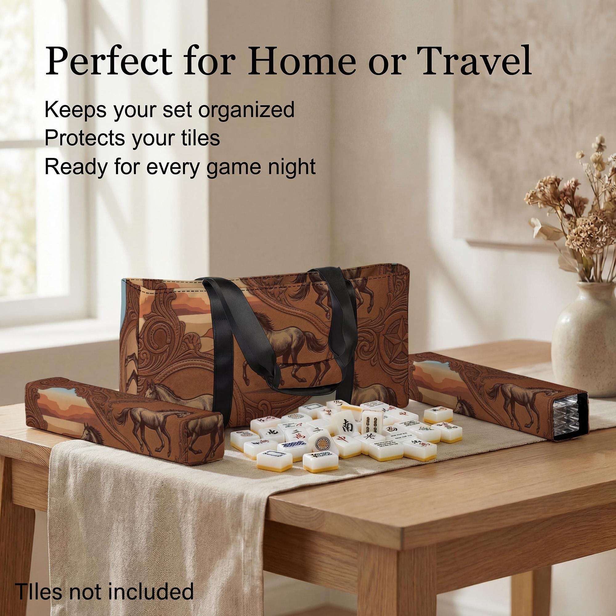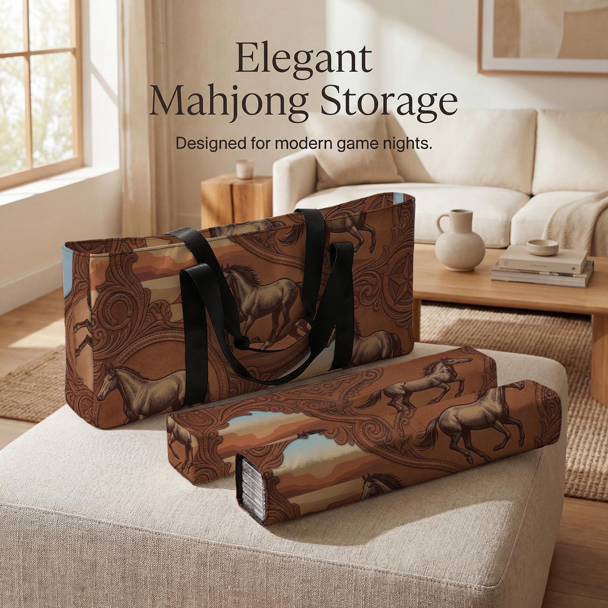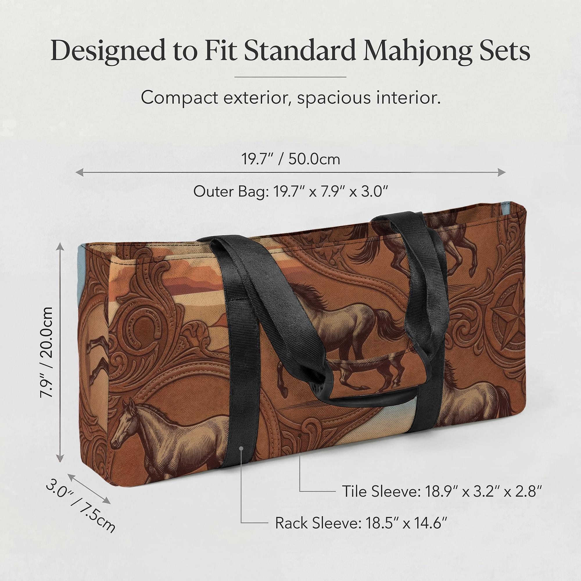Step into the spirit of the Wild West with this rustic travel bag designed especially for mahjong enthusiasts. Featuring a horse tile sleeve and a rack storage wrap, this set combines practical organization with stunning desert sunset art that captures the beauty of southwestern style. Whether you're heading to a game night or traveling with your favorite set, this waterproof carrier keeps your tiles and racks safe in style.