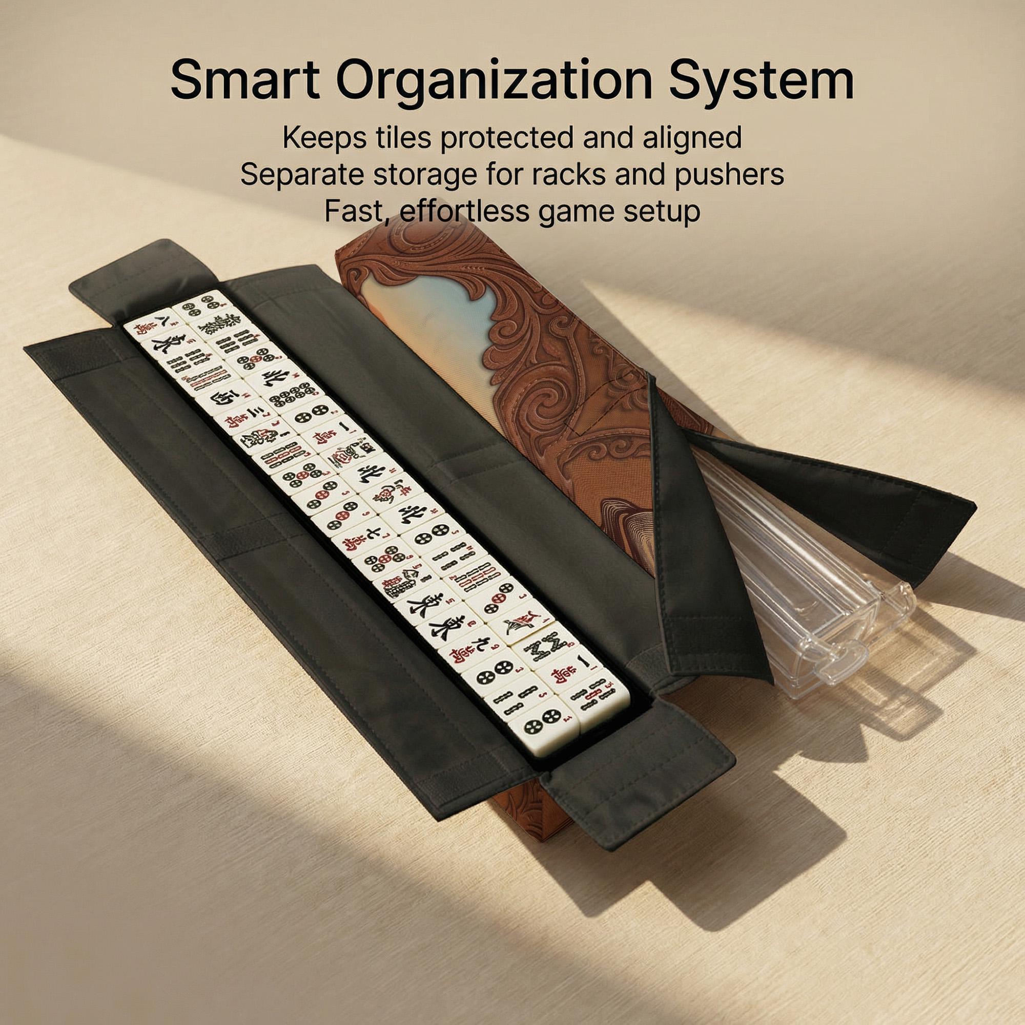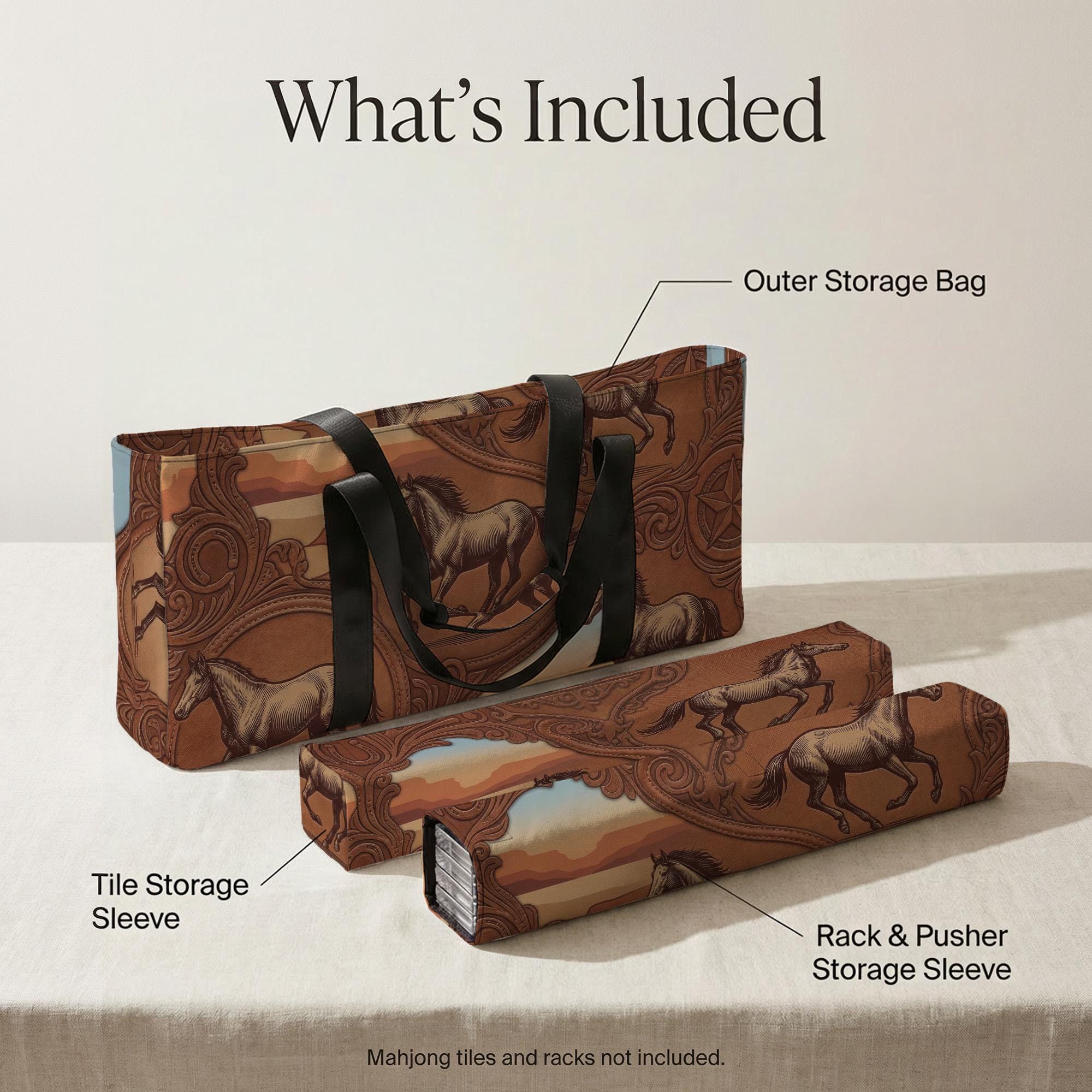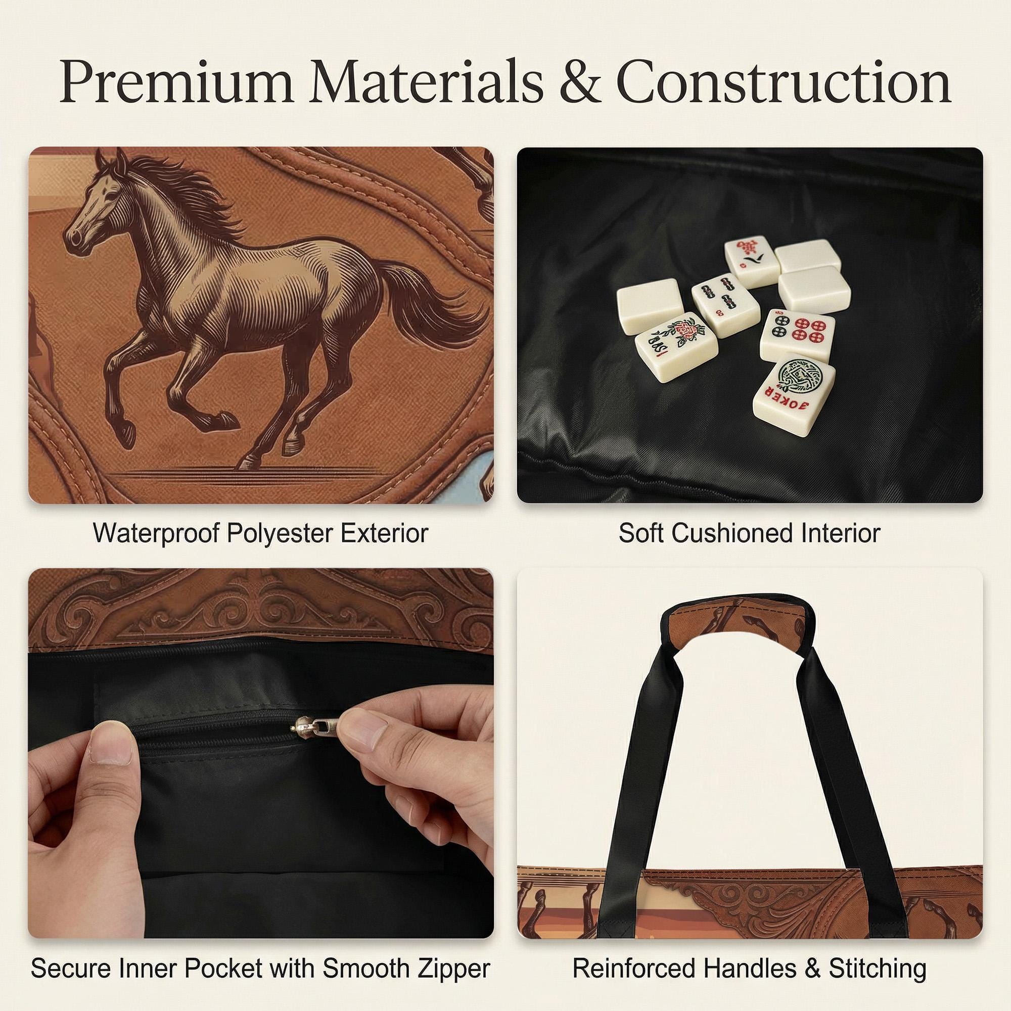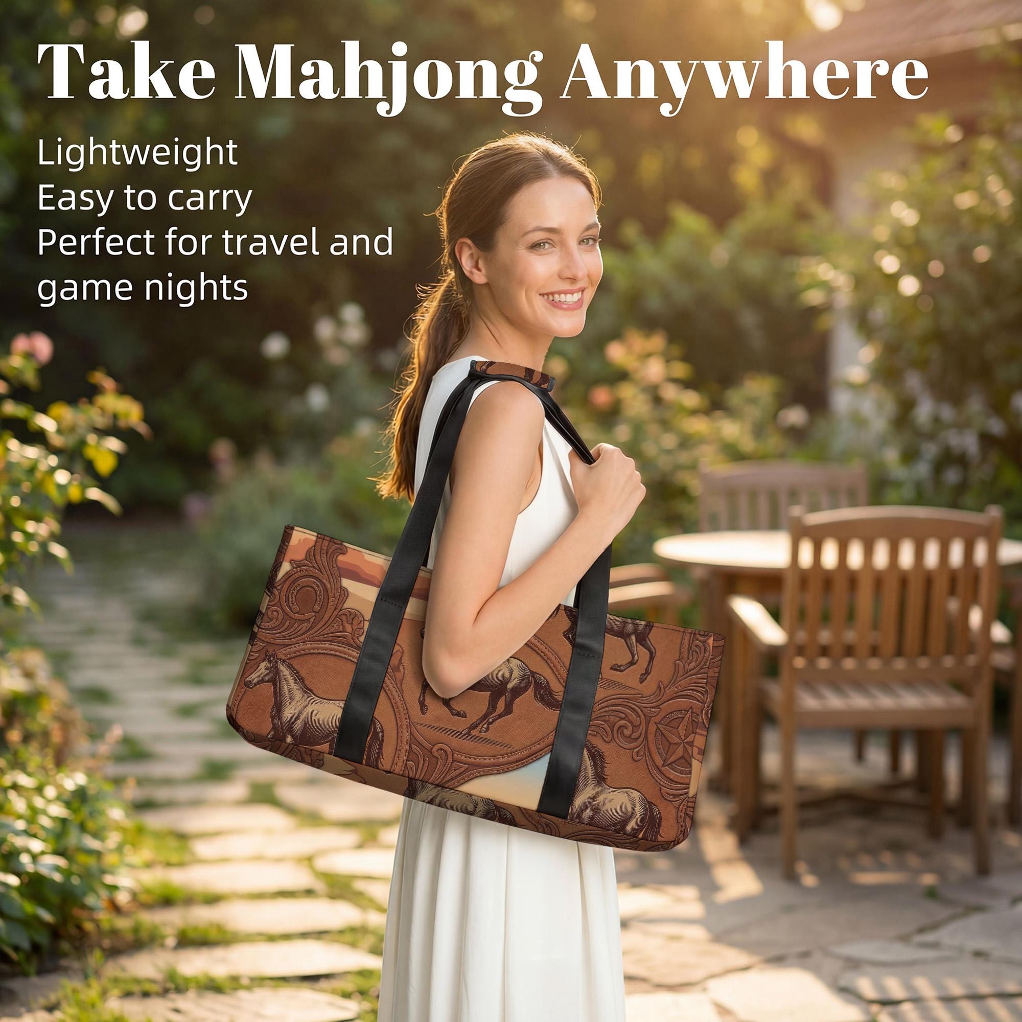 Step into the spirit of the Wild West with this rustic travel bag designed especially for mahjong enthusiasts. Featuring a horse tile sleeve and a rack storage wrap, this set combines practical organization with stunning desert sunset art that captures the beauty of southwestern style. Whether you're heading to a game night or traveling with your favorite set, this waterproof carrier keeps your tiles and racks safe in style.