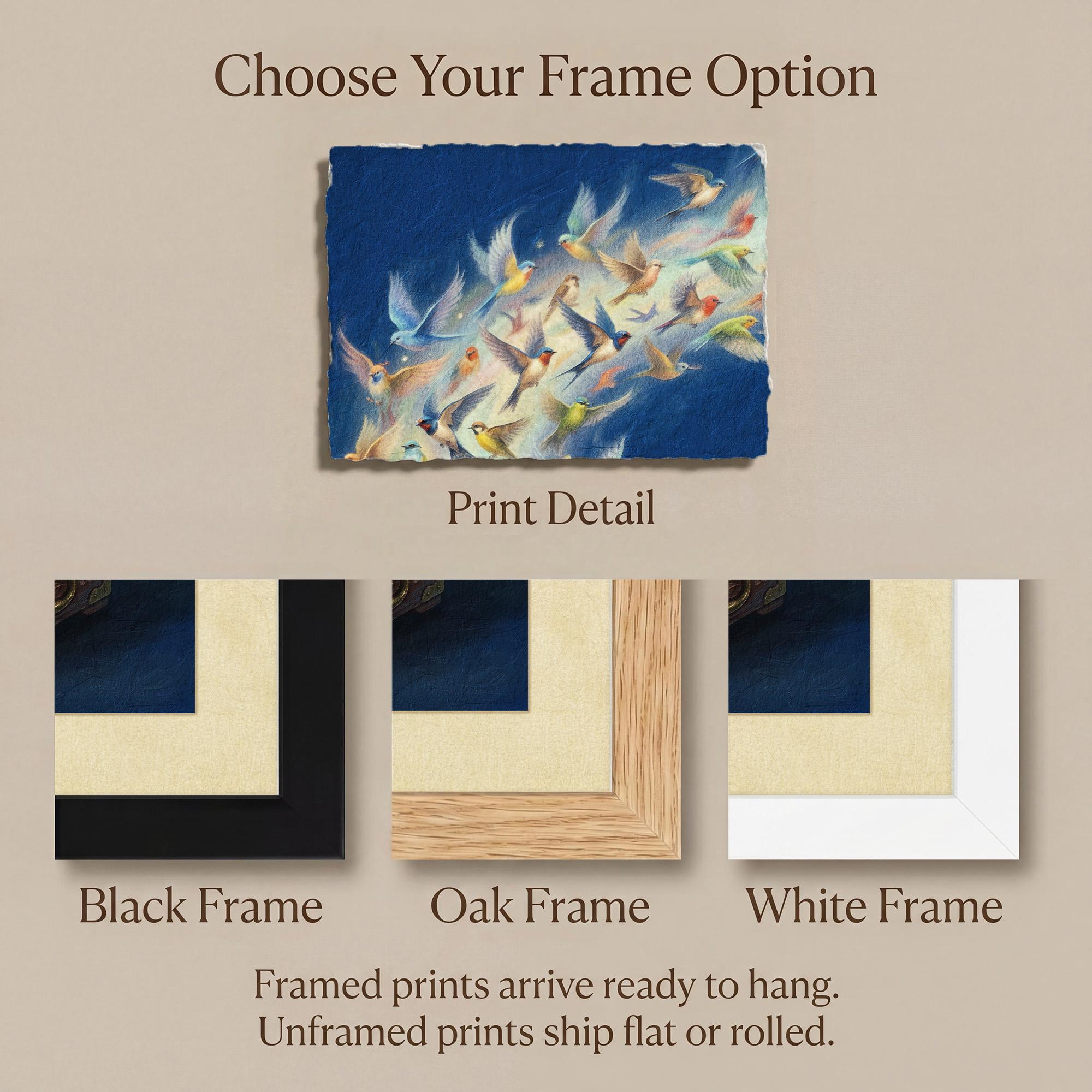 Framed prints arrive ready to hang.