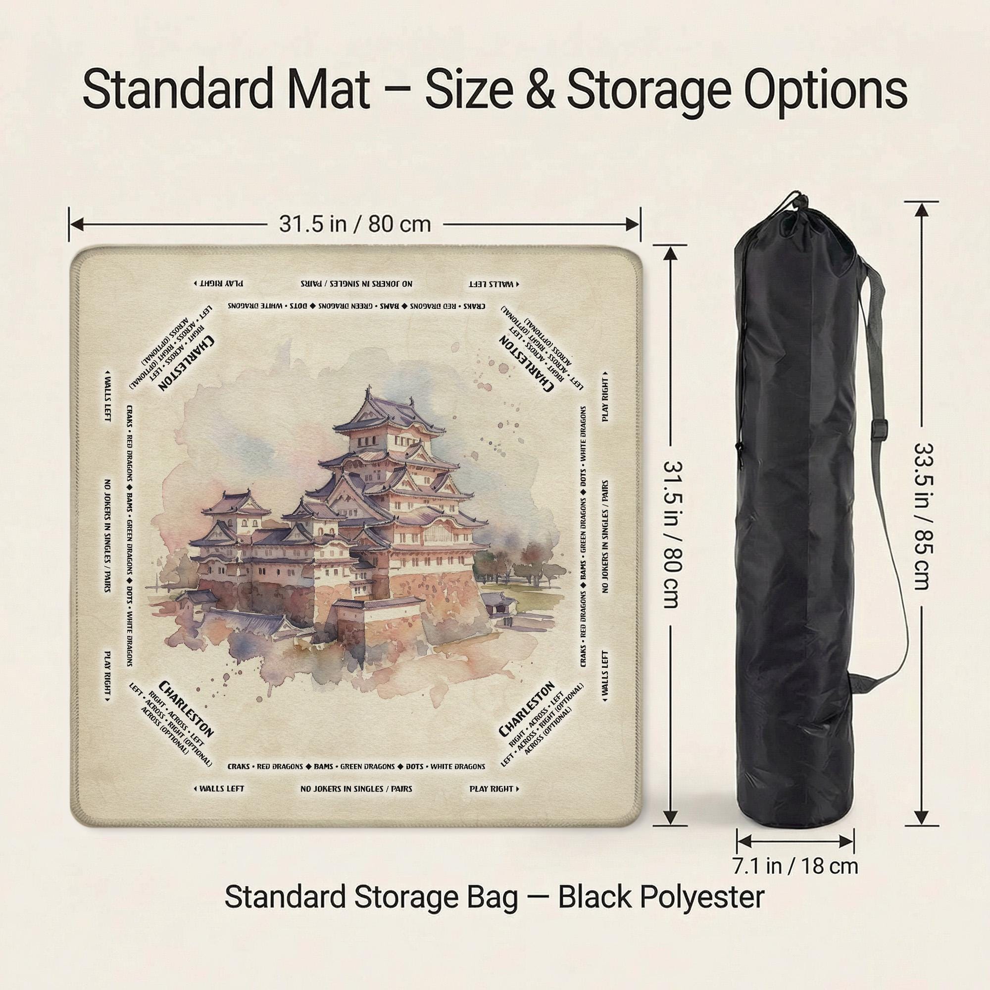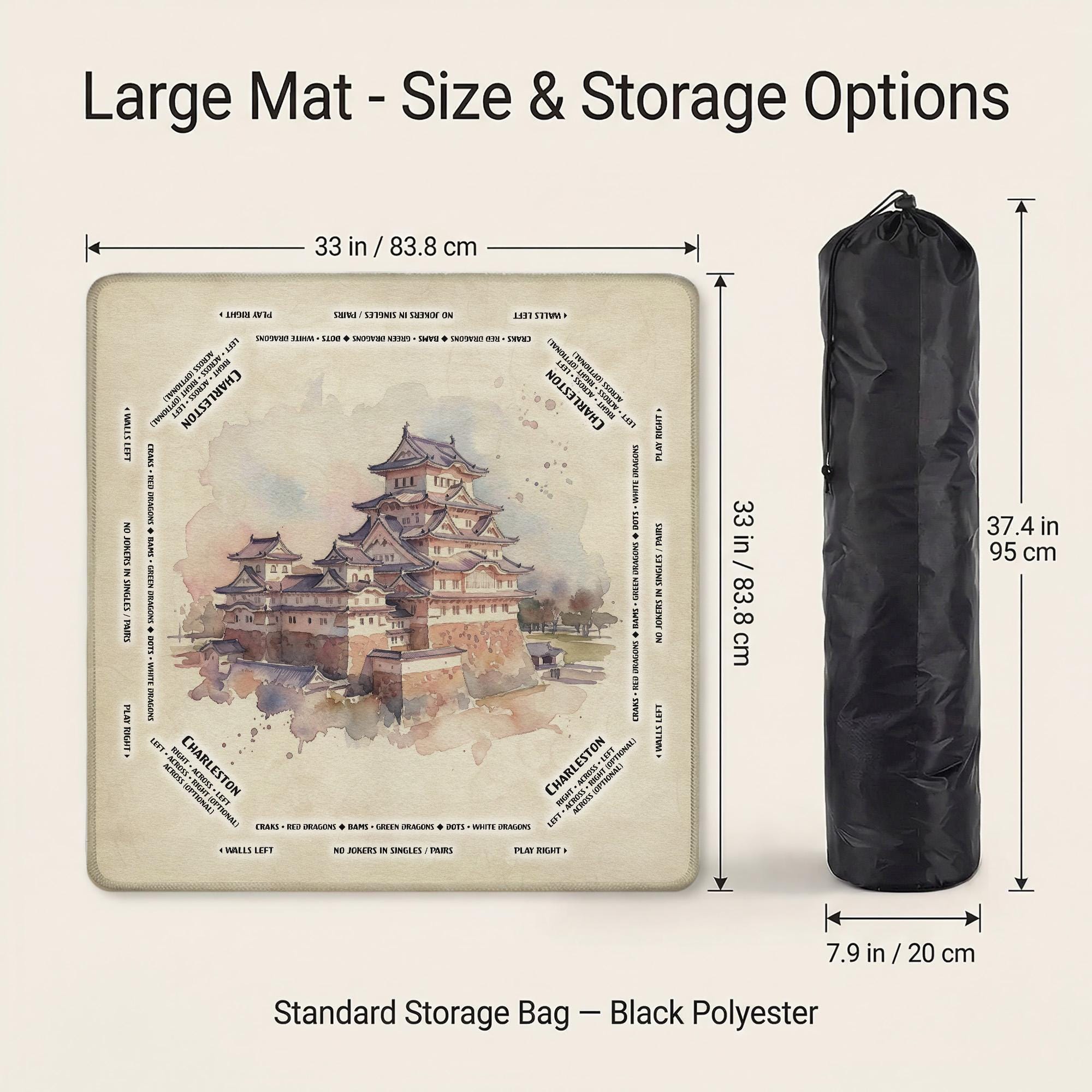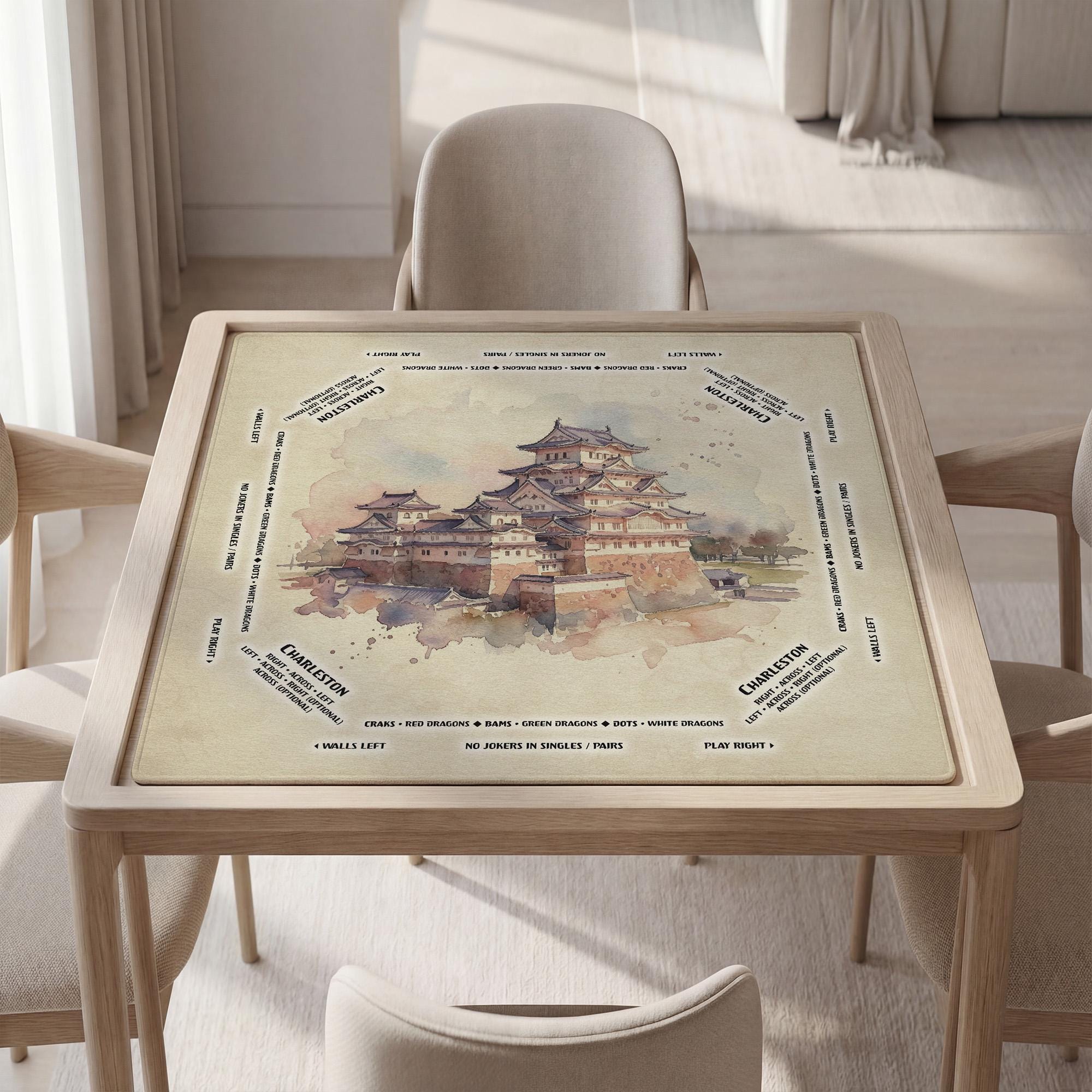 Immerse yourself in the tranquil elegance of Japanese aesthetic with this beautifully crafted mahjong mat featuring the iconic Himeji Castle art. Designed for enthusiasts who appreciate both style and function, this personalized gaming accessory offers a waterproof tabletop surface with an anti slip backing to ensure a quiet, focused game. Whether at home or on the go, this large play mat combines cultural heritage with practical design to elevate every game night.