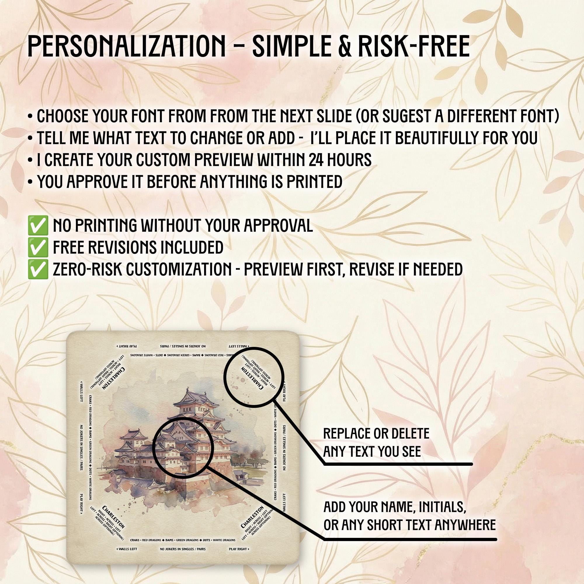 Our shop is dedicated to creating thoughtful, high-quality accessories that enhance your gaming moments. Each personalized Mahjong mat is carefully crafted with attention to detail and shipped promptly to bring joy to your game nights and special occasions.