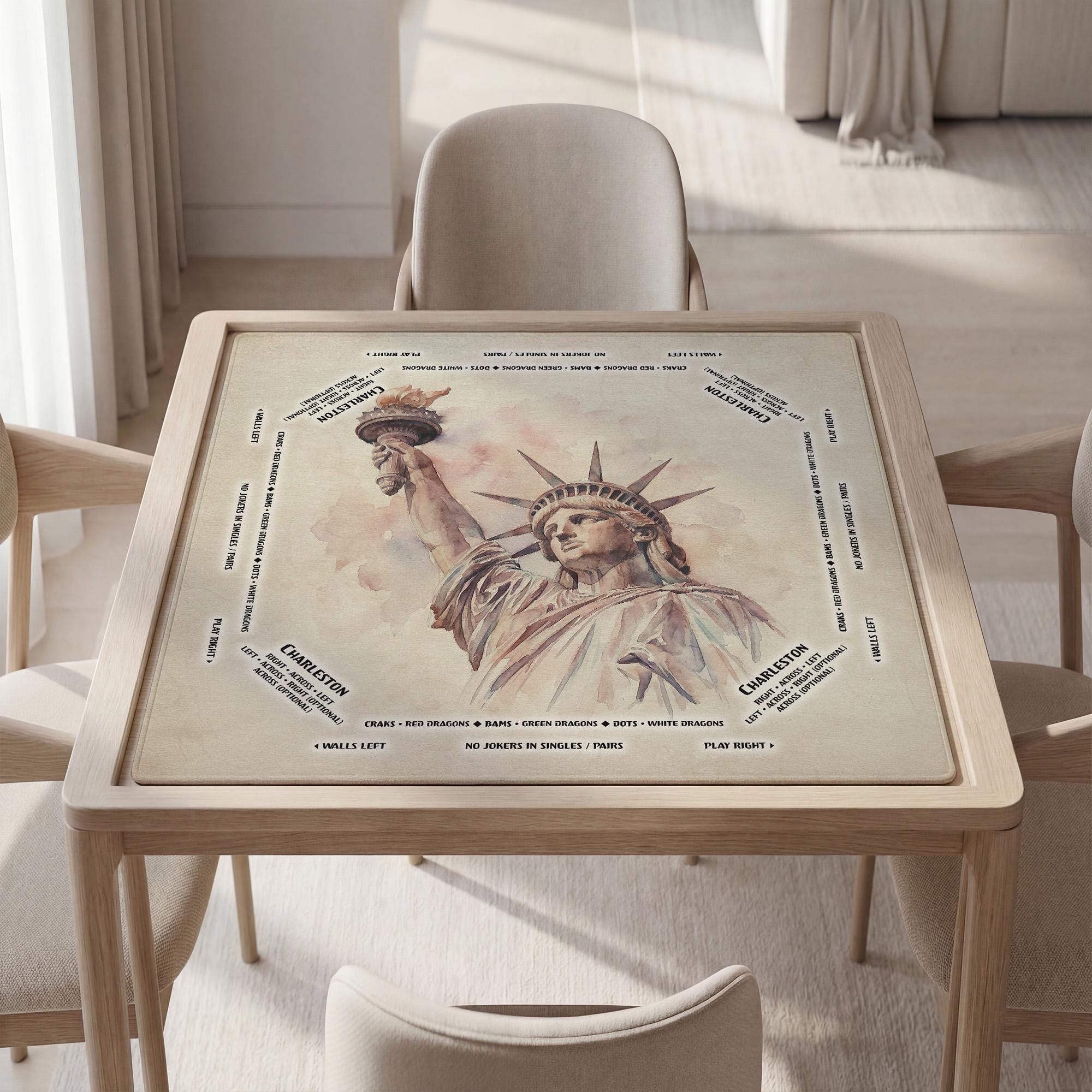 Elevate your gaming experience with this premium Statue of Liberty watercolor mat featuring a waterproof surface and protective storage bag. This personalized New York landmark tabletop pad offers anti-slip technology and noise reduction for the ultimate focused game night.