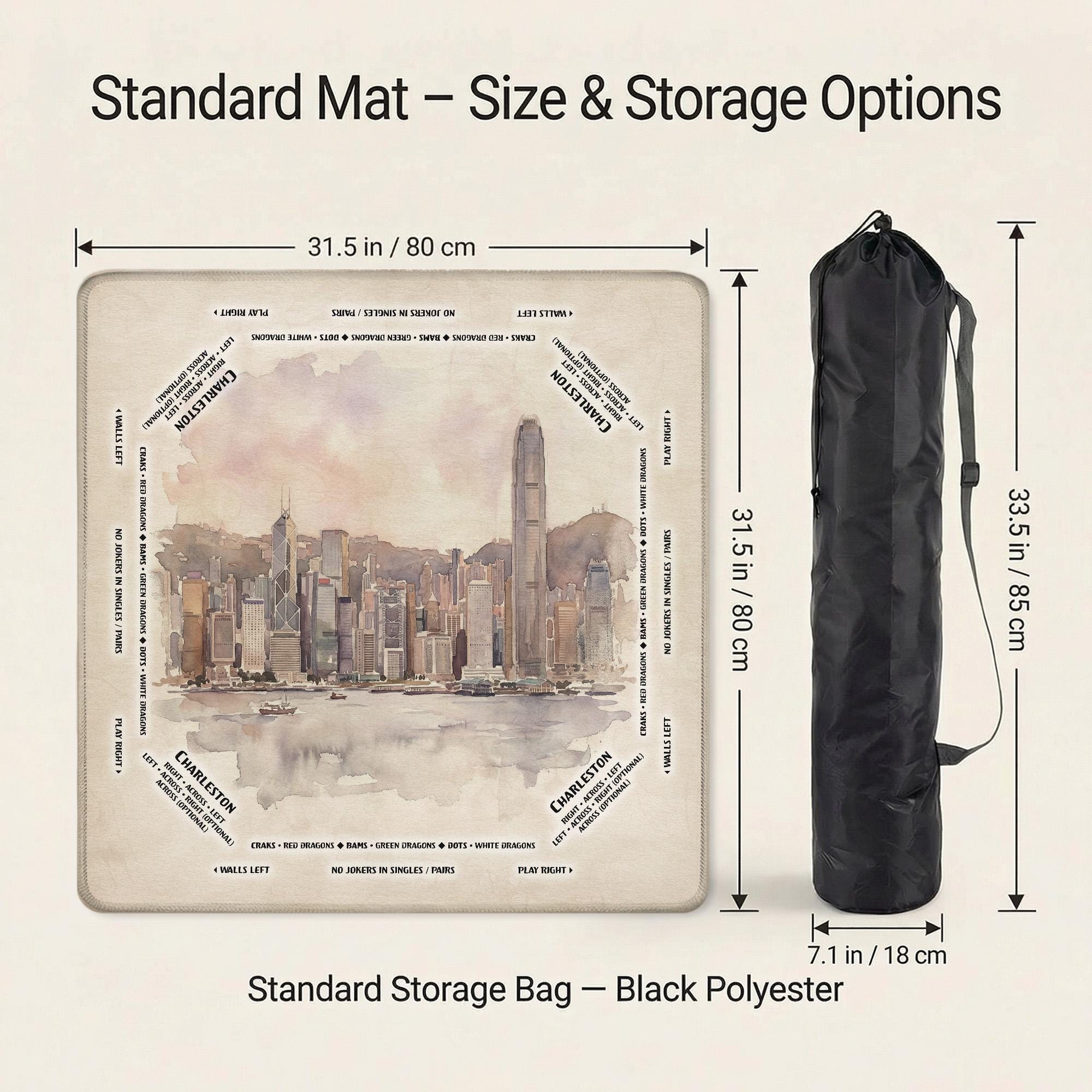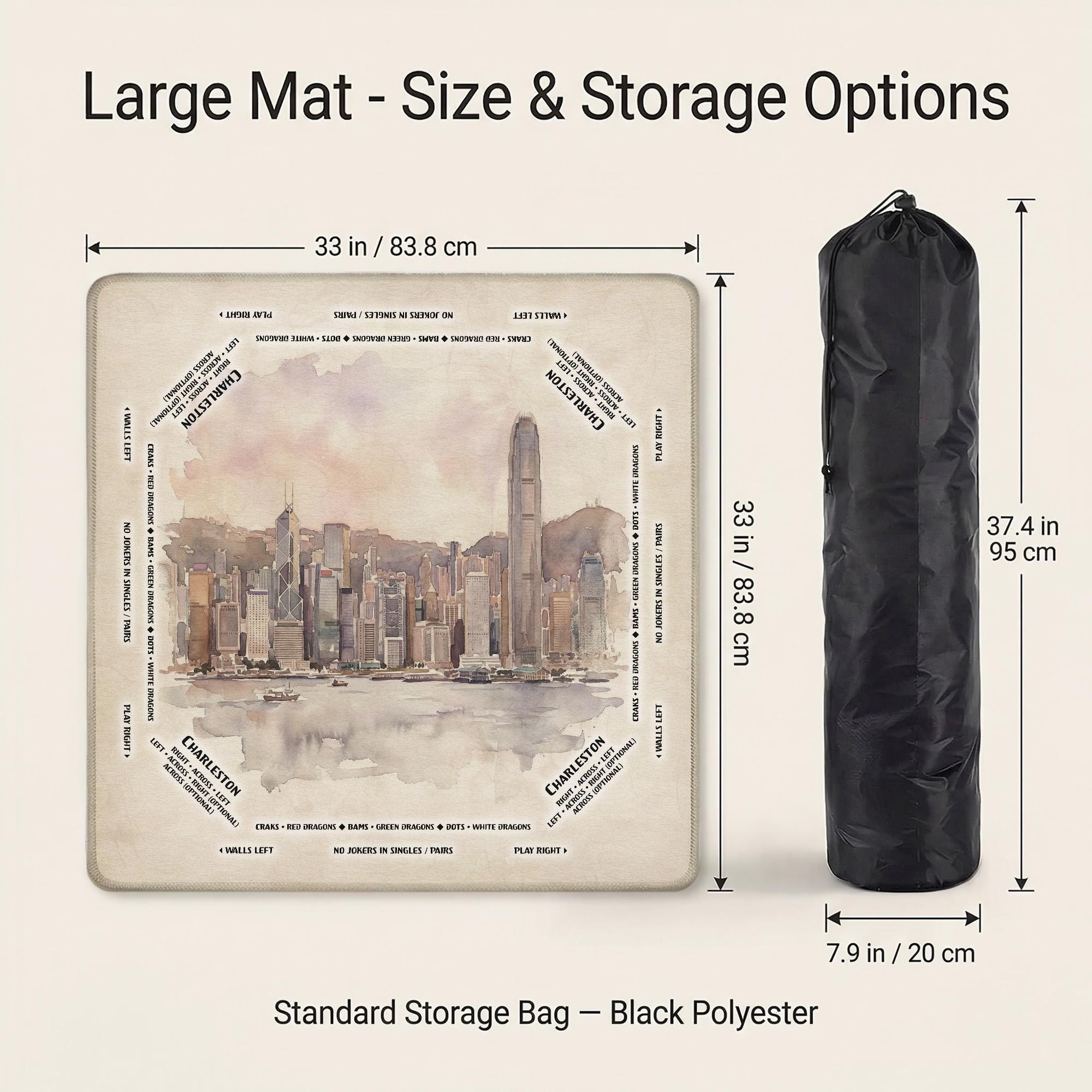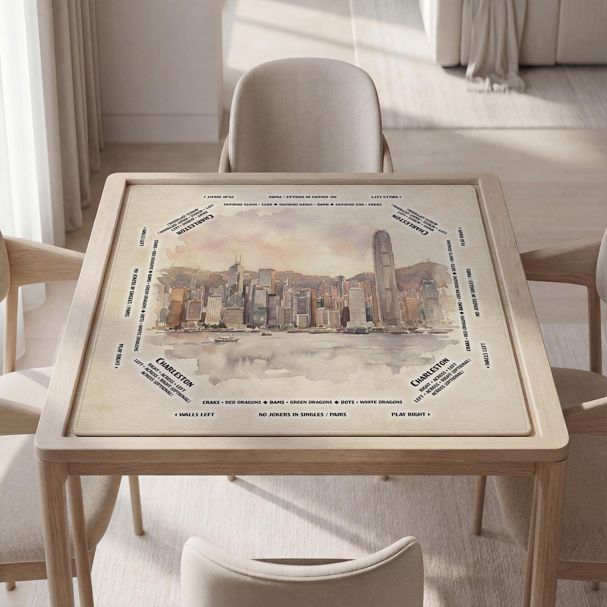 Elevate your Mahjong experience with this beautifully crafted Victoria Harbour game mat, designed to bring both style and function to your tabletop. Featuring a waterproof fabric and anti slip rubber backing, it ensures a quiet play surface that stays firmly in place during every game. Whether you're a dedicated American player or searching for a unique hobby gift, this portable roller mat combines artistry with practicality.