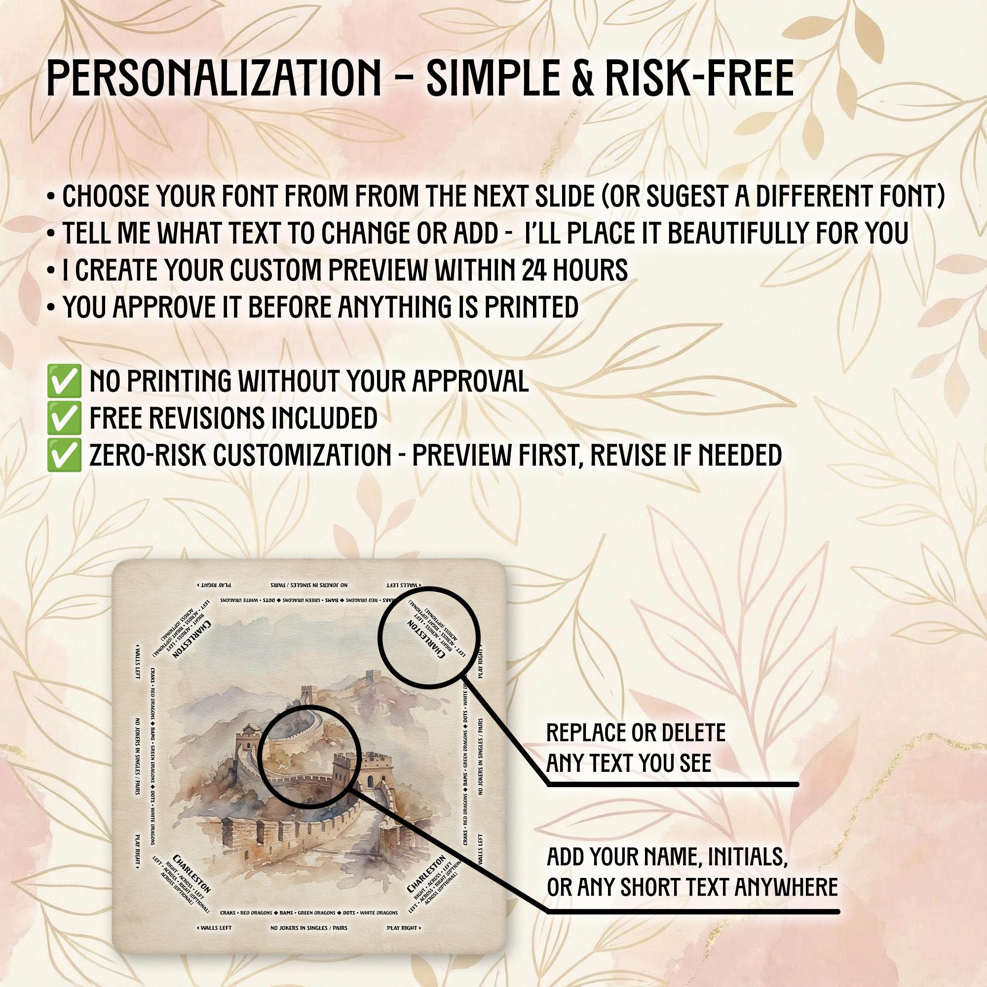 Our shop is dedicated to creating thoughtful, high-quality accessories that enhance your gaming moments. Each personalized Mahjong mat is carefully crafted with attention to detail and shipped promptly to bring joy to your game nights and special occasions.