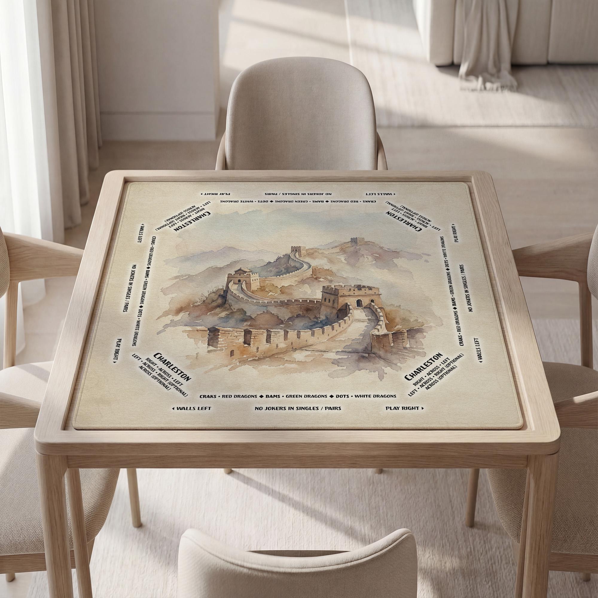 Elevate your game nights with this beautifully crafted Mahjong mat featuring a watercolor depiction of the Great Wall of China. Designed with a non-slip base and noise reduction features, it ensures a focused and enjoyable playing experience. Personalize this unique table cover with custom name art to make it truly your own or a memorable gift.