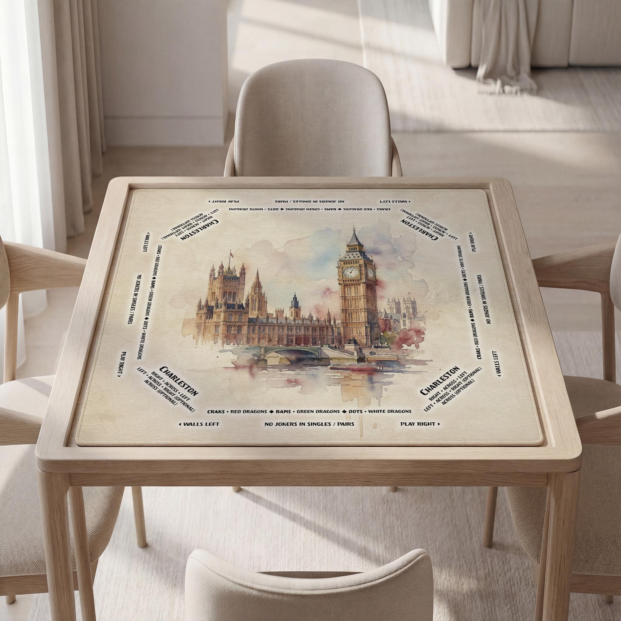 Elevate your game nights with a beautifully crafted London watercolor mat inspired by the iconic Big Ben. This personalized Big Ben London gaming pad combines artistry and function, featuring a noise reducing mat surface that ensures a quieter, more enjoyable play experience. Designed with a waterproof game mat and non-slip rubber backing, it stays firmly in place while protecting your table.