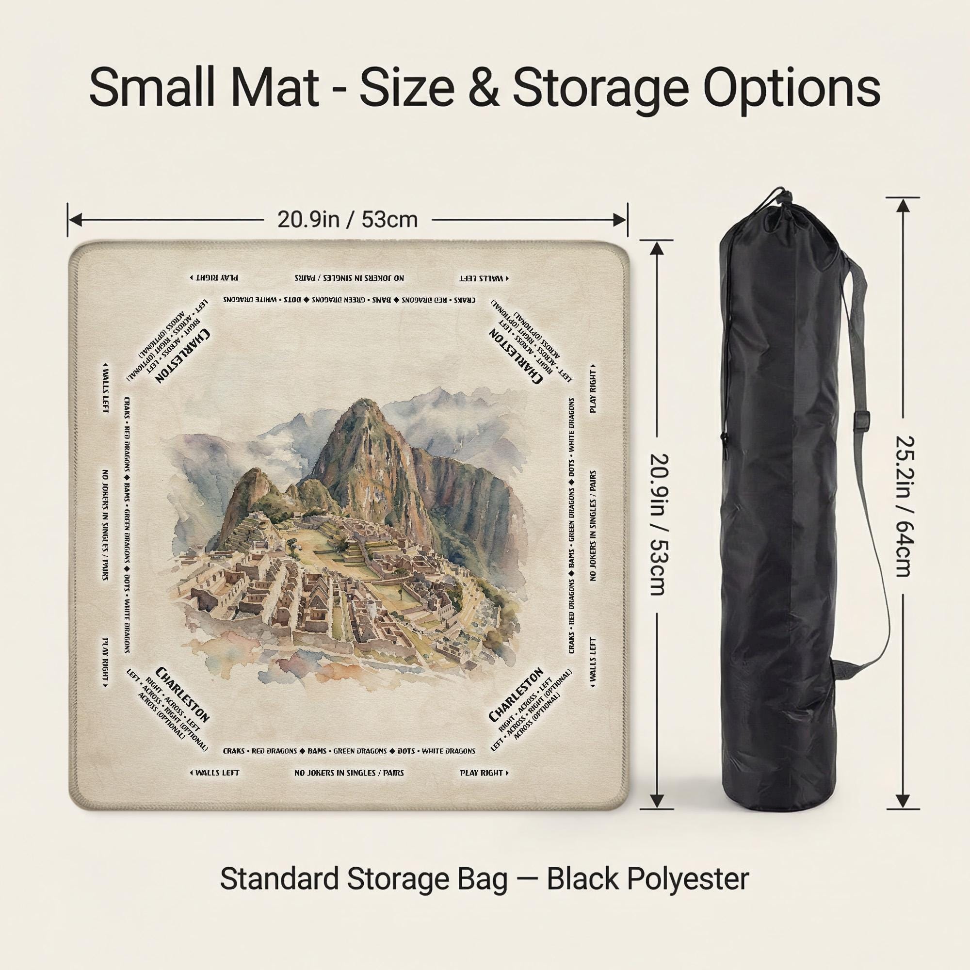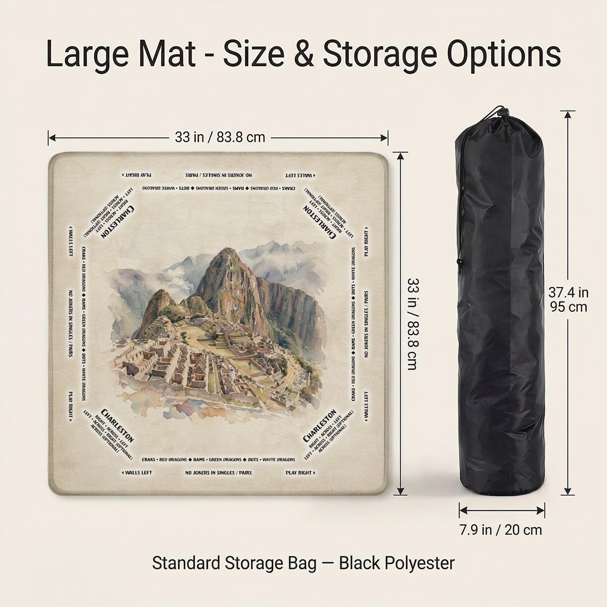 Immerse yourself in the spirit of South America with this beautifully crafted Mahjong mat featuring vibrant Machu Picchu artwork. Designed with a non slip rubber base, it ensures your game stays perfectly in place, while the quiet tile surface creates a serene playing experience. This personalized gaming gift allows you to add custom initials, making each session uniquely yours or a thoughtful present for any Mahjong enthusiast.