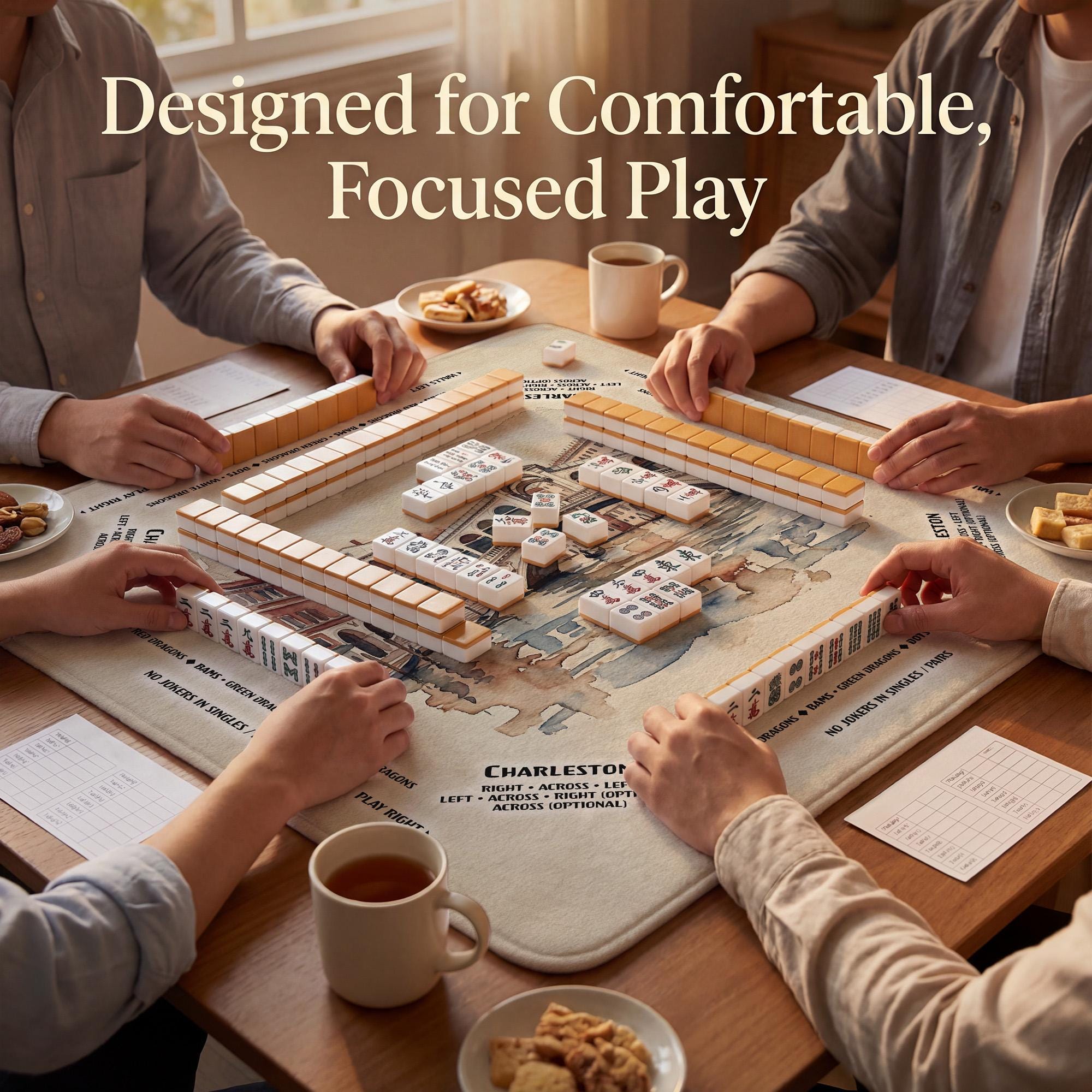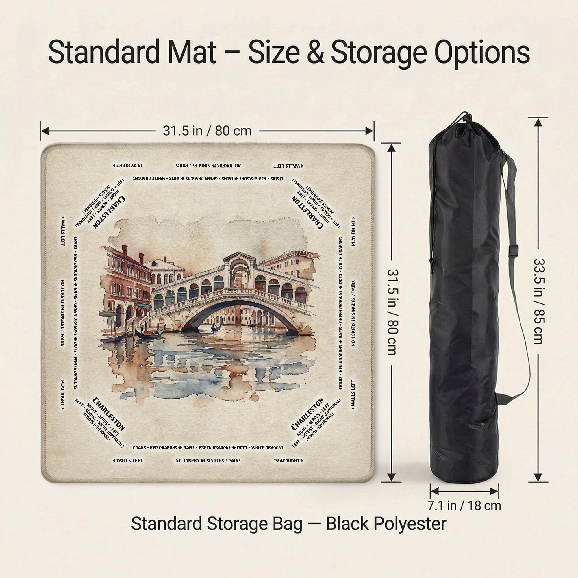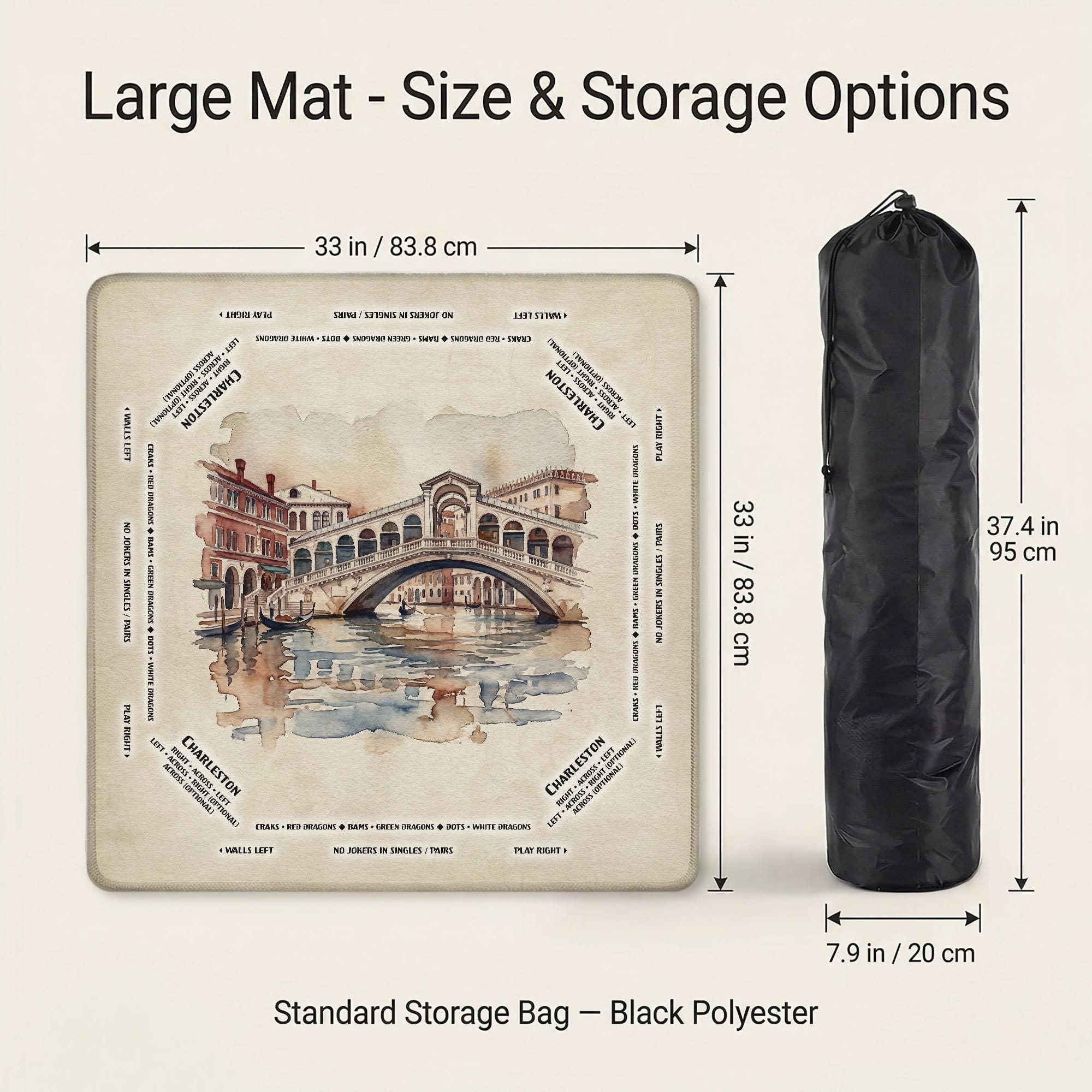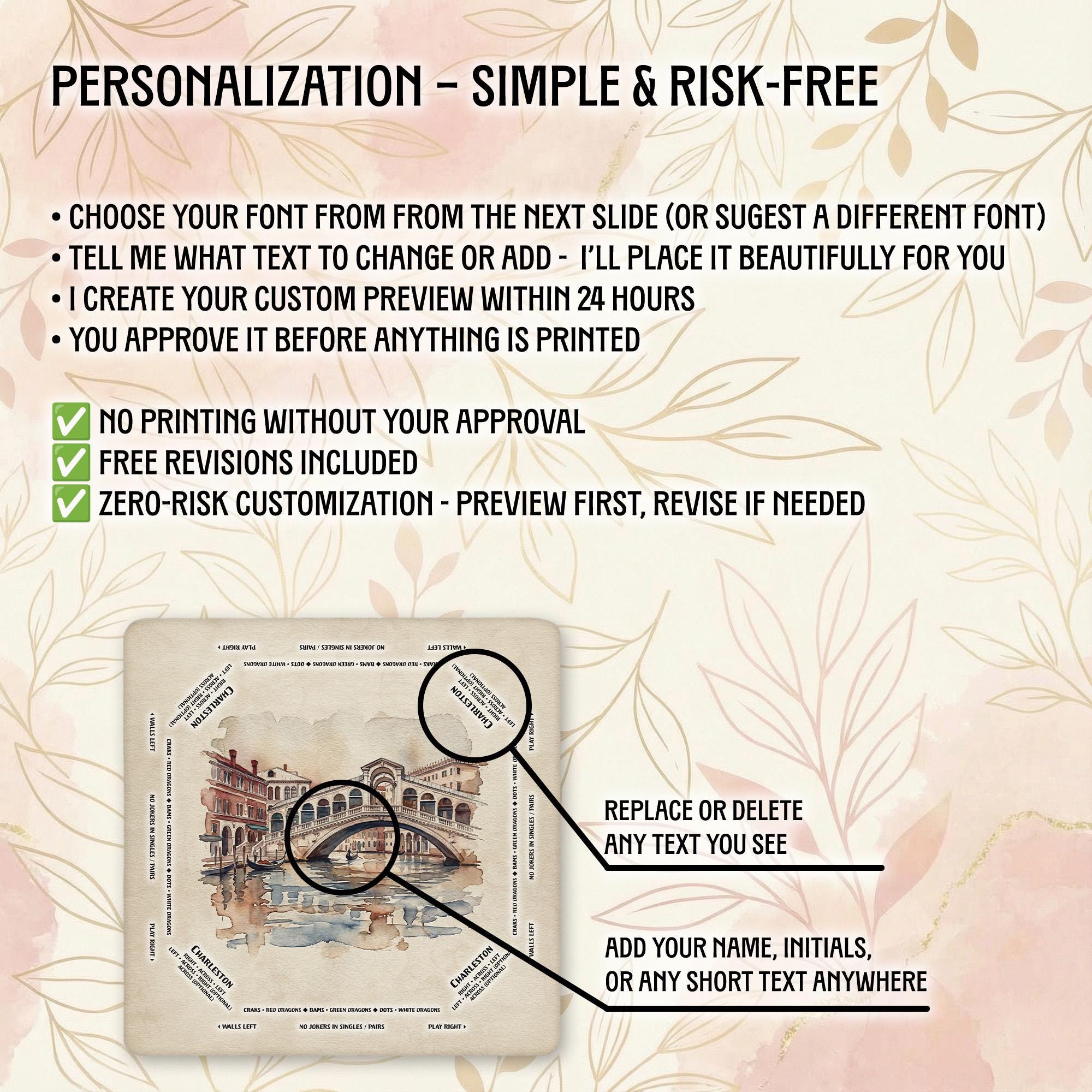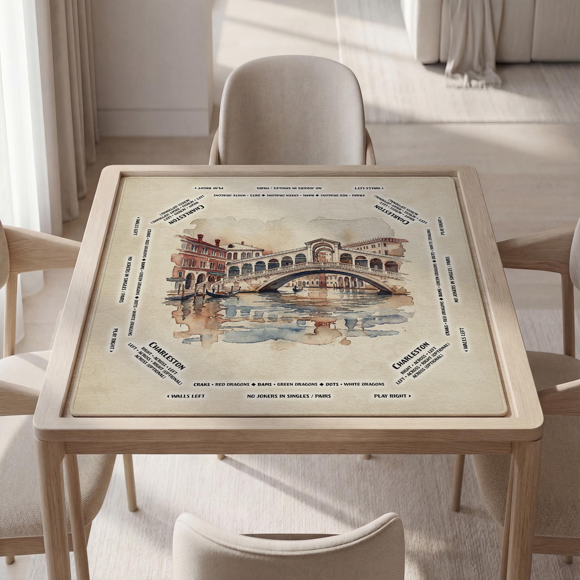 Transform your Mahjong nights with this exquisite watercolor Venice mat, thoughtfully designed to enhance every game with a smooth play surface and noise-reducing pad. Featuring a non slip rubber base, this mat stays securely in place, while its personalized charm makes it a truly unique gift for any Mahjong player. Whether at home or on the go, the portable carry pouch ensures your custom text mat travels easily to every game.
