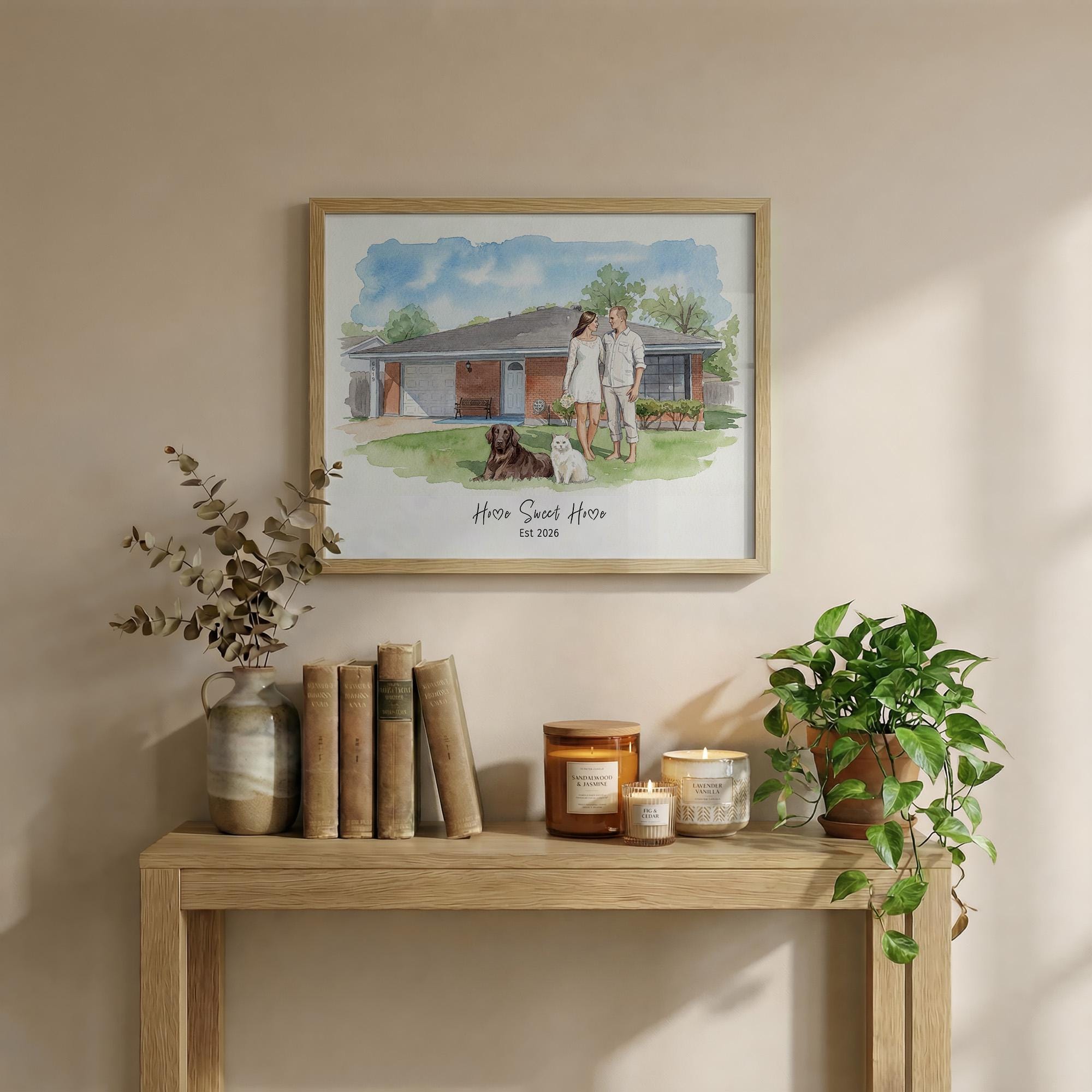 Every home holds a unique story, and this personalized house portrait brings yours to life by featuring you, your pets, and your cherished home in a hand-finished watercolor style. Designed as a thoughtful new home gift idea or a memorable real estate closing keepsake, this custom artwork beautifully merges your house and family into one heartfelt piece. With attention to detail and a custom text option, itโs the perfect homeowners gift art that celebrates your special place.