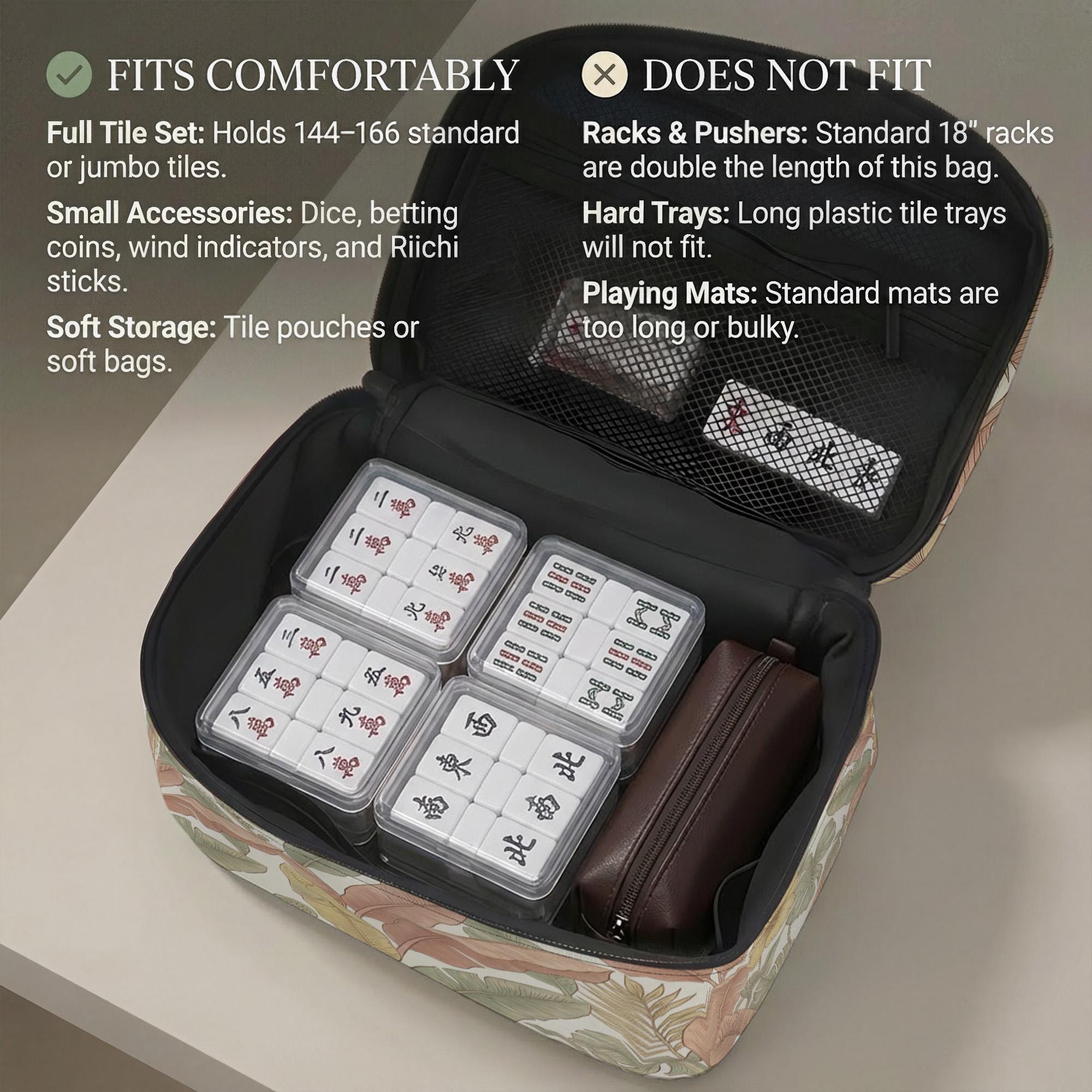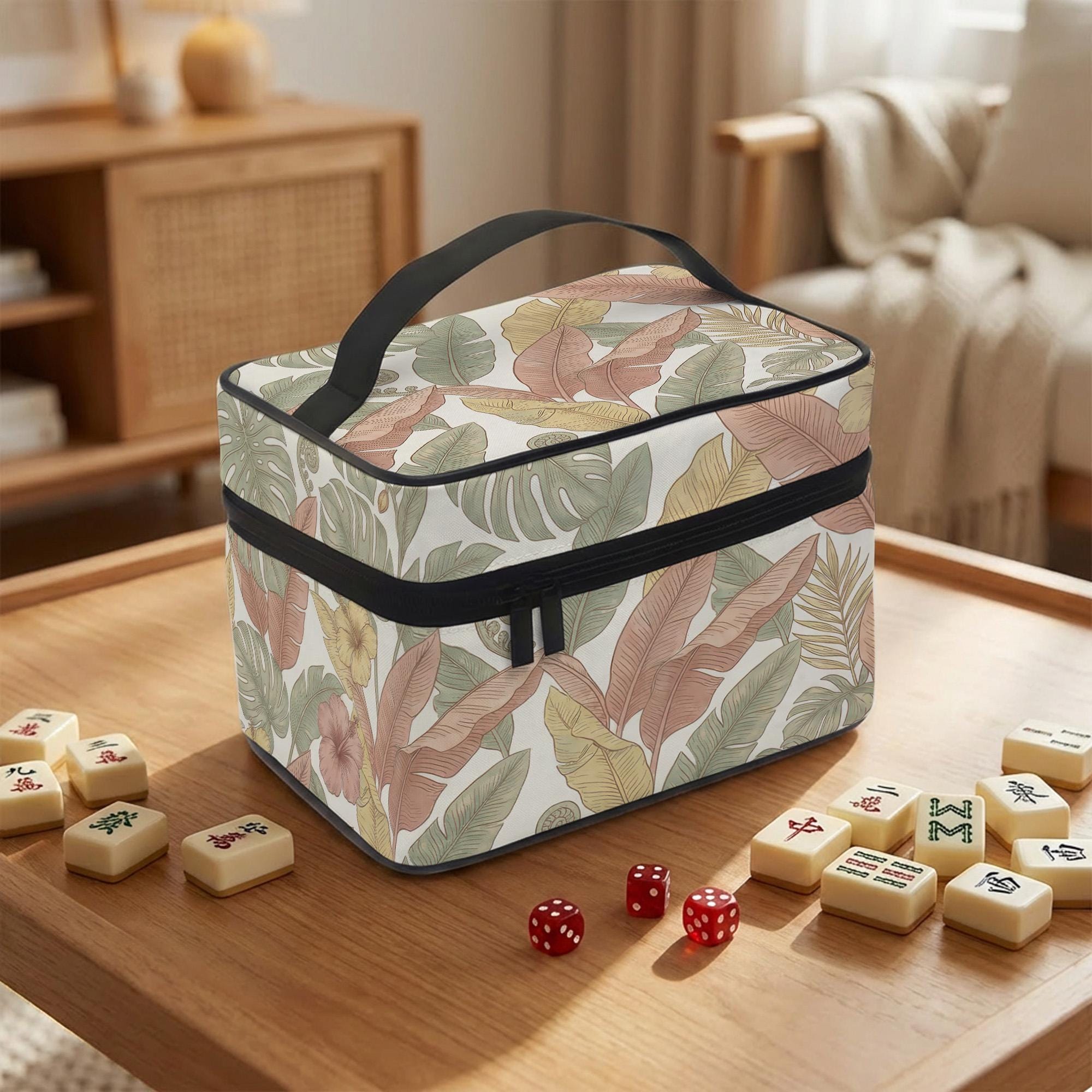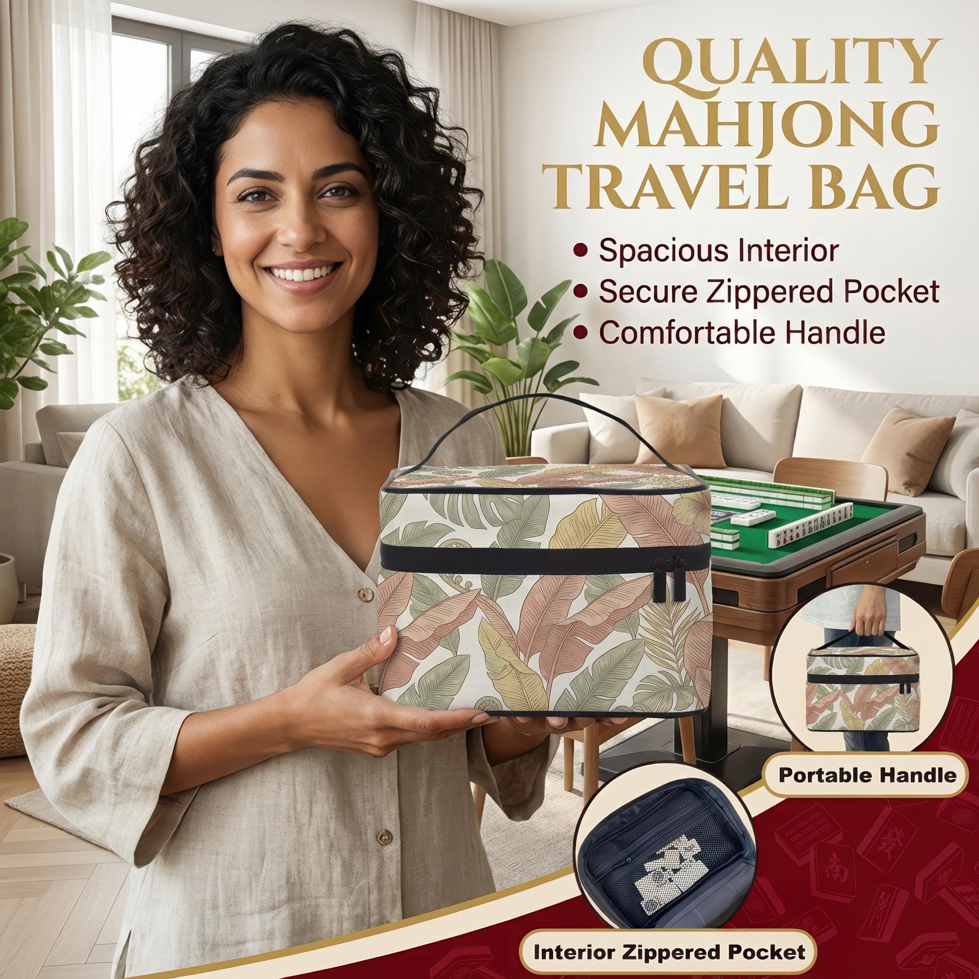 Experience the perfect blend of style and functionality with this botanical leaf print mahjong tile carrier, designed for the avid player on the go. Whether you're heading to a mahjong party or need a reliable travel bag floral enough to stand out, this portable tile carrier offers both elegance and practicality. Crafted with care, its leaf-patterned bag design ensures your game essentials stay organized and protected in every social game night.
