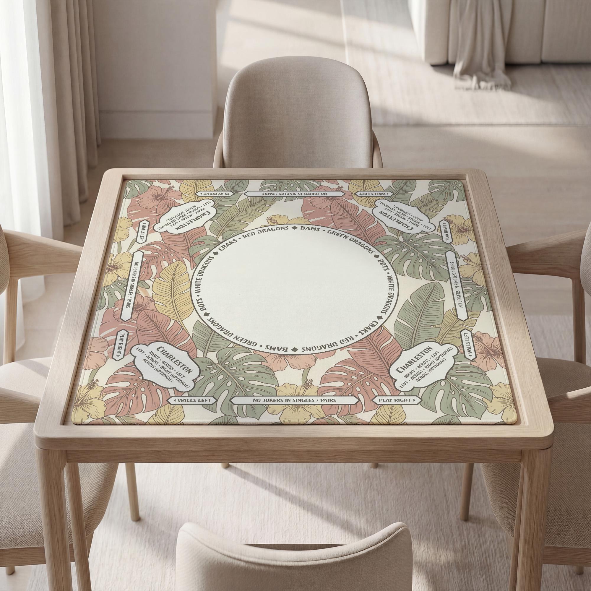 Elevate your next game night with this stunning tropical hibiscus mahjong mat featuring customizable text for a truly personal touch. The premium non-slip rubber backing and noise-reducing fabric ensure a focused, professional playing experience that protects your table and tiles.
