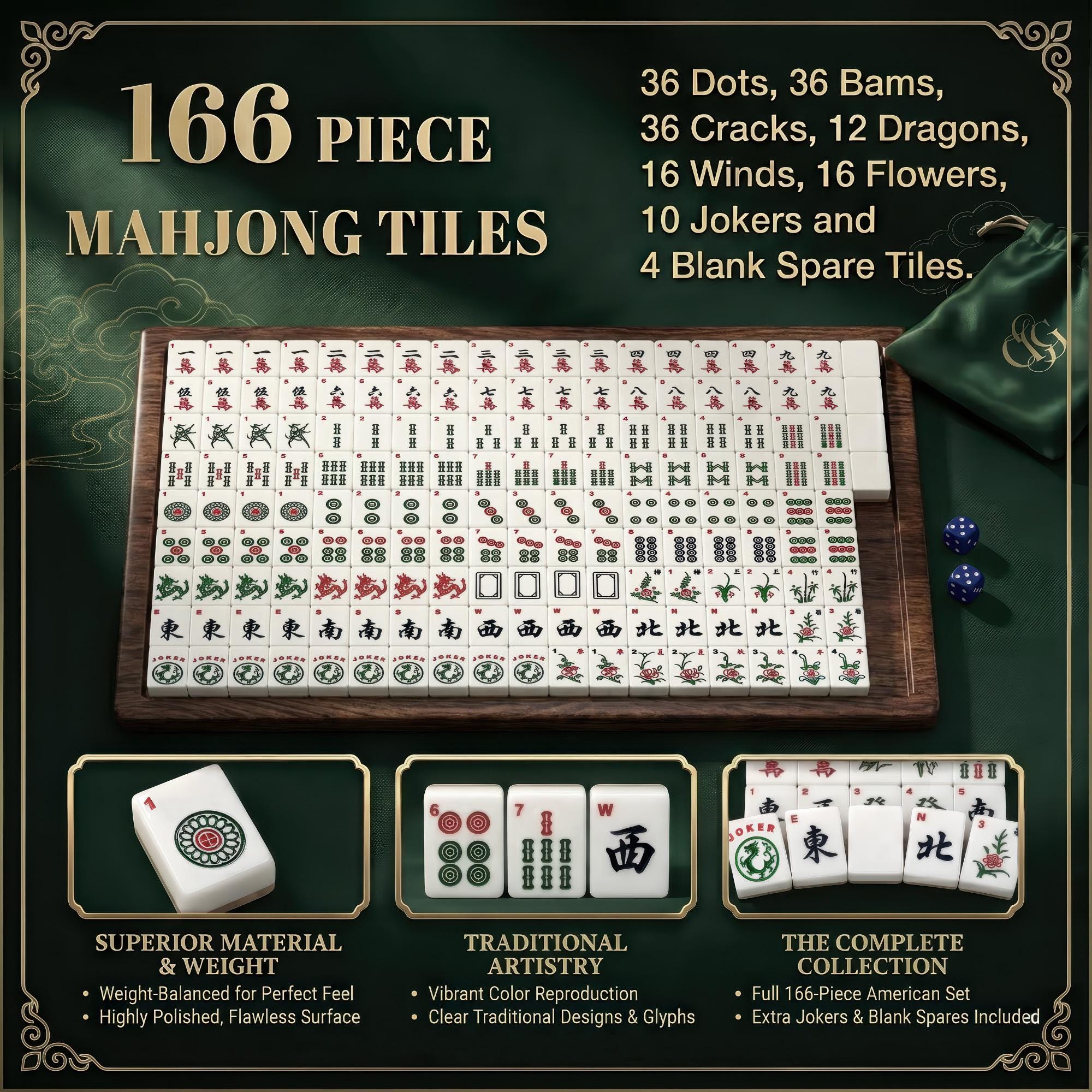 โข Complete Set: All 166 tiles plus dice and a storage case included.