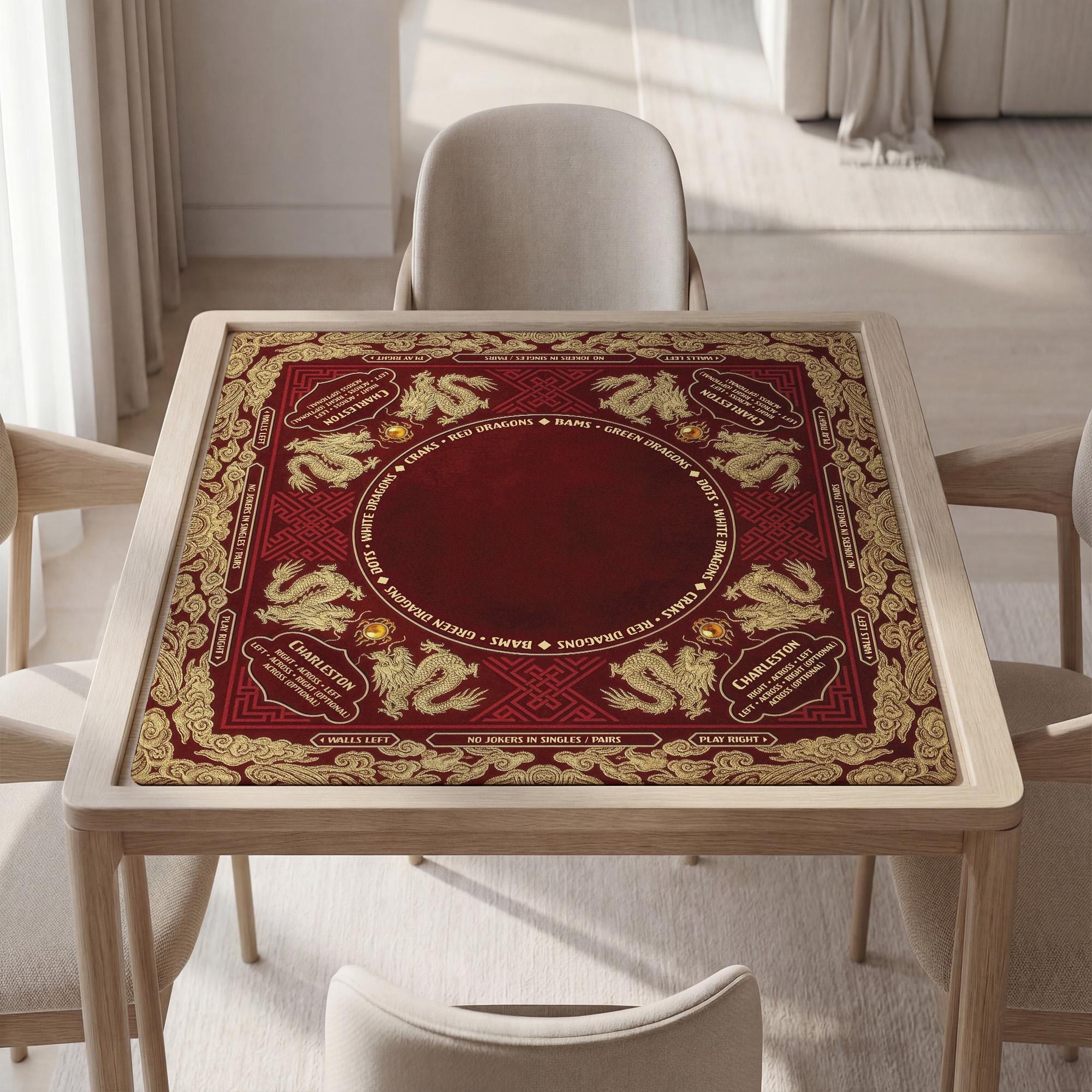 Transform your gaming space with a personalized red and gold dragon mahjong mat tailored to your style. This premium waterproof cover features stunning Chinoiserie artistry and a non-slip grip for a professional-grade experience.