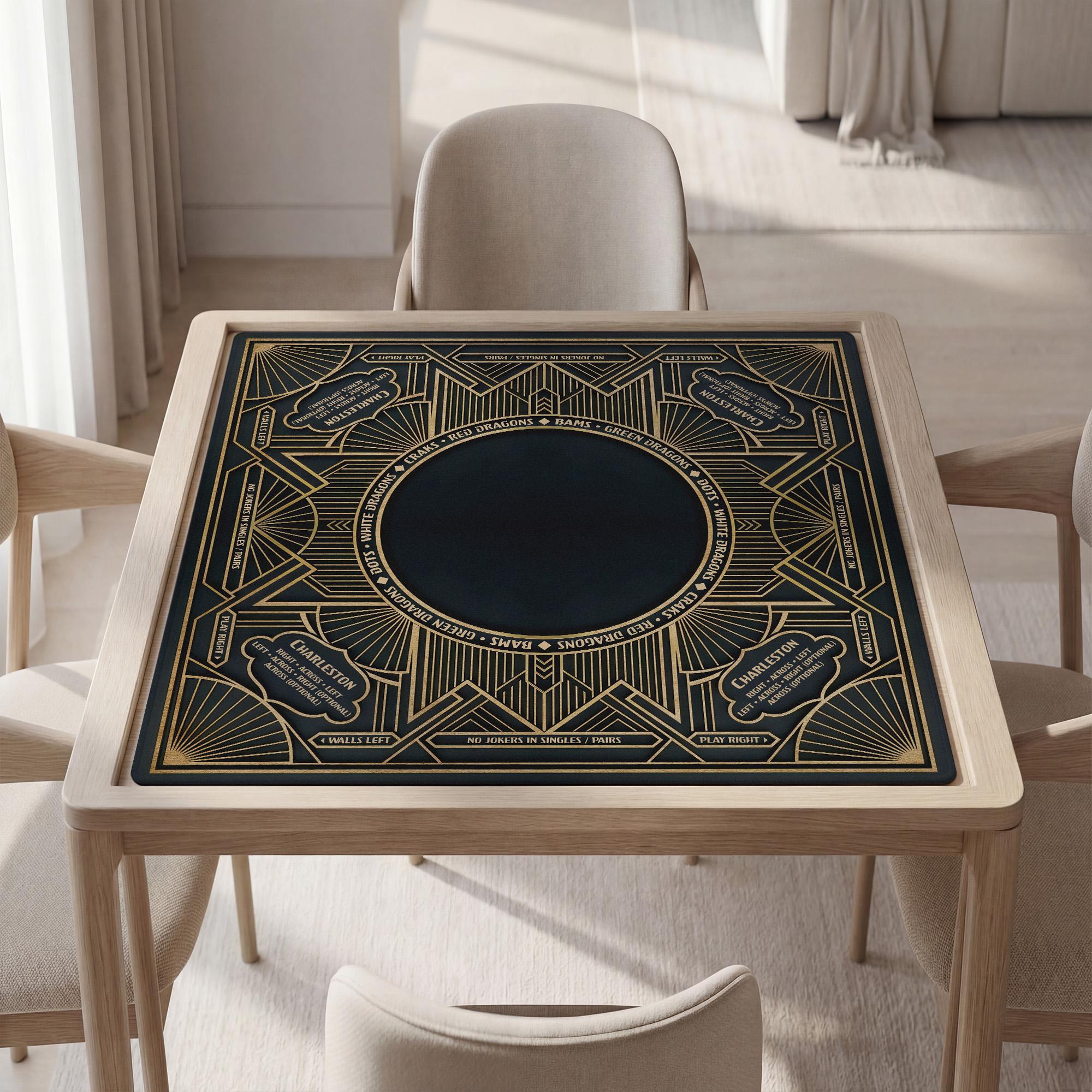 Bring Gatsby-inspired elegance to your next game with this personalized dark and gold Art Deco mahjong mat. Featuring a premium waterproof surface and silent-play technology, itโs the perfect blend of high-end style and professional functionality.